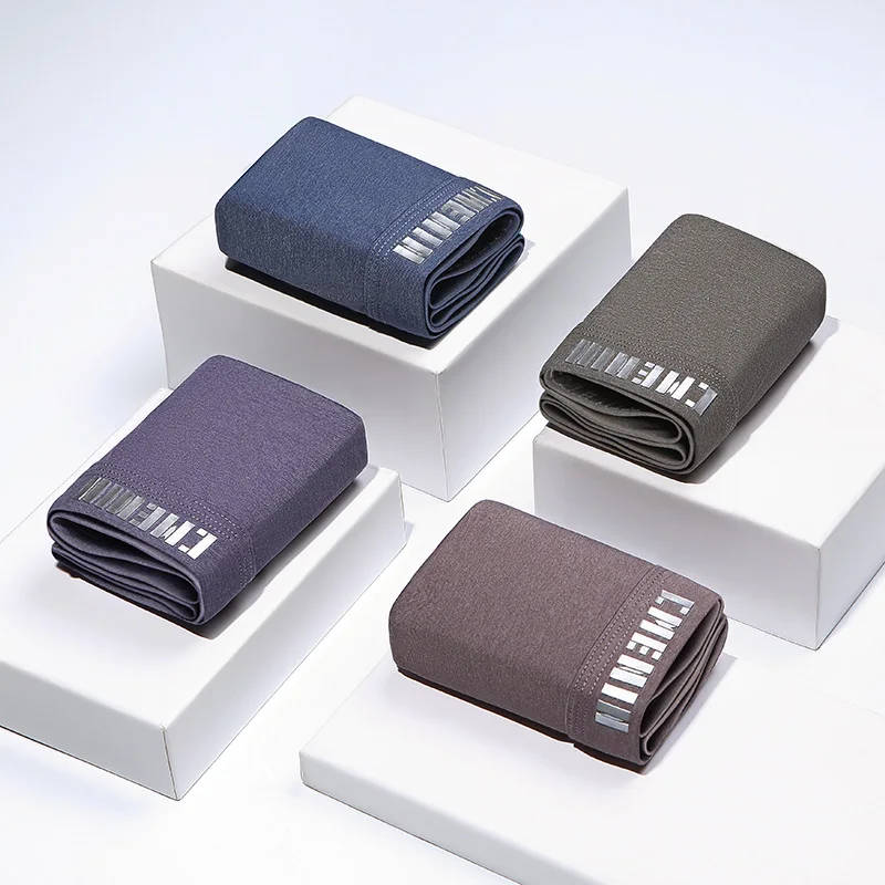 Трусы-боксеры мужские 4 шт.лот, хлопковое нижнее белье, однотонные ...