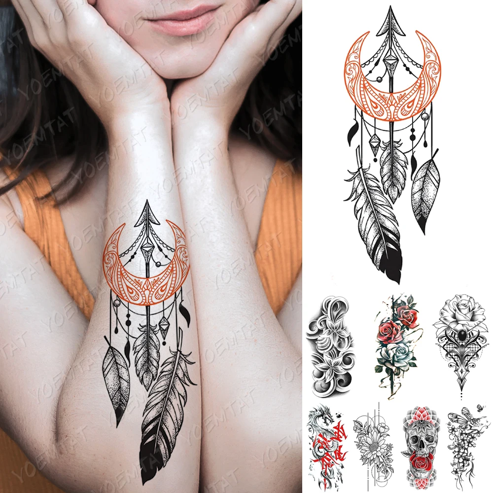переводные татуировки временные наклейки тату долговечные Водостойкие временные тату-наклейки, луна, перо, Ловец снов, цветок, тату хна для боди, Арта, руки, временные рукава, тату для женщин и мужчин