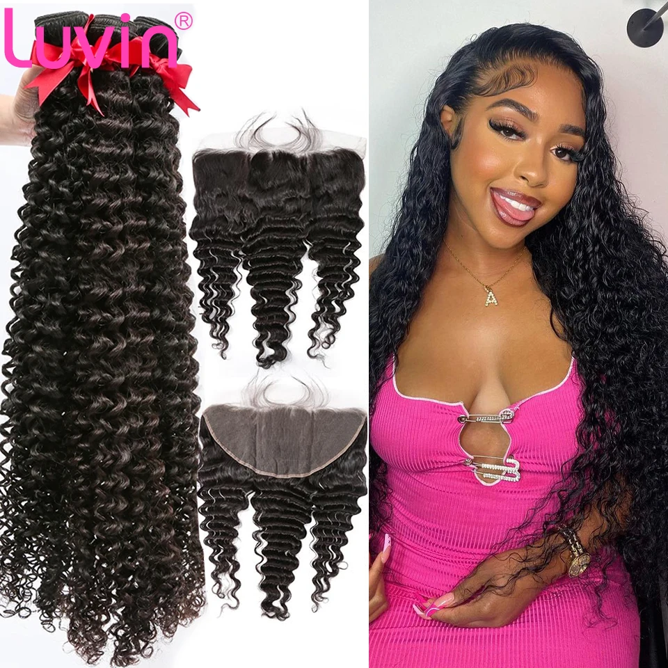 Luvin человеческие волосы с глубокой волной бразильские 3 4 пряди с...