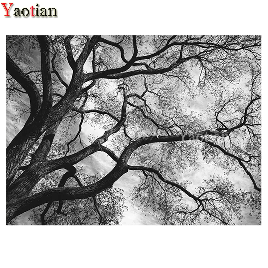 Набор для алмазной вышивки с изображением черно-белого дерева, пейзажа, квадратная Круглая Мозаика