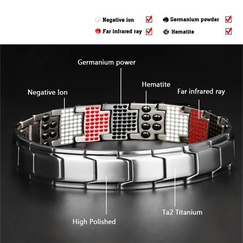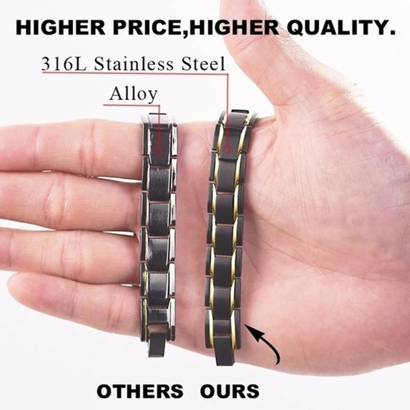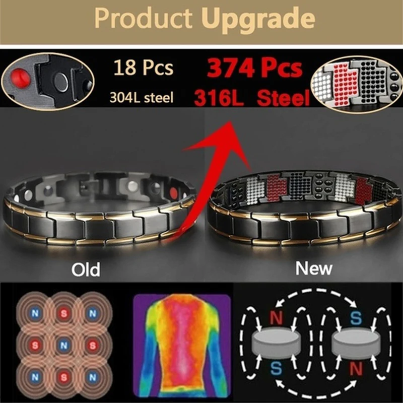 Роскошный мужской браслет из нержавеющей стали с магнитной терапией, новейший мужской браслет 7 в 1 из 374 Частей Энергетического камня, Двойная сила, магнитный терапевтический элемент, снятие боли при артрите, энергетический био магнитный, терапия, регулируемые мужские ювелирные изделия