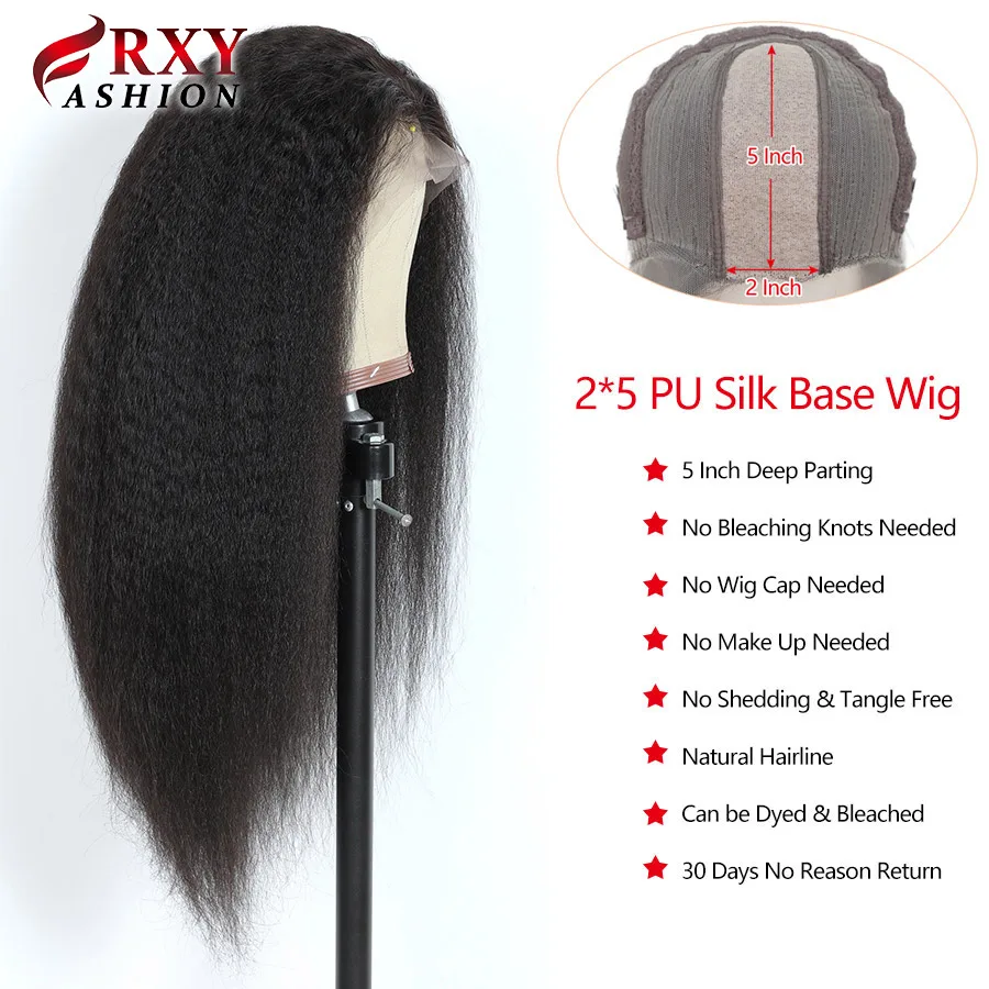 RXY модный кудрявый прямой парик из кожзаменителя, Шелковый базовый кружевной парик, 2x5, парик на шнурке, бразильские волосы Remy на фронте, парики из человеческих волос для женщин