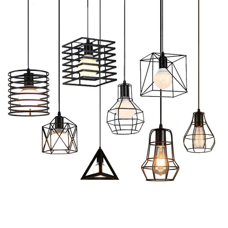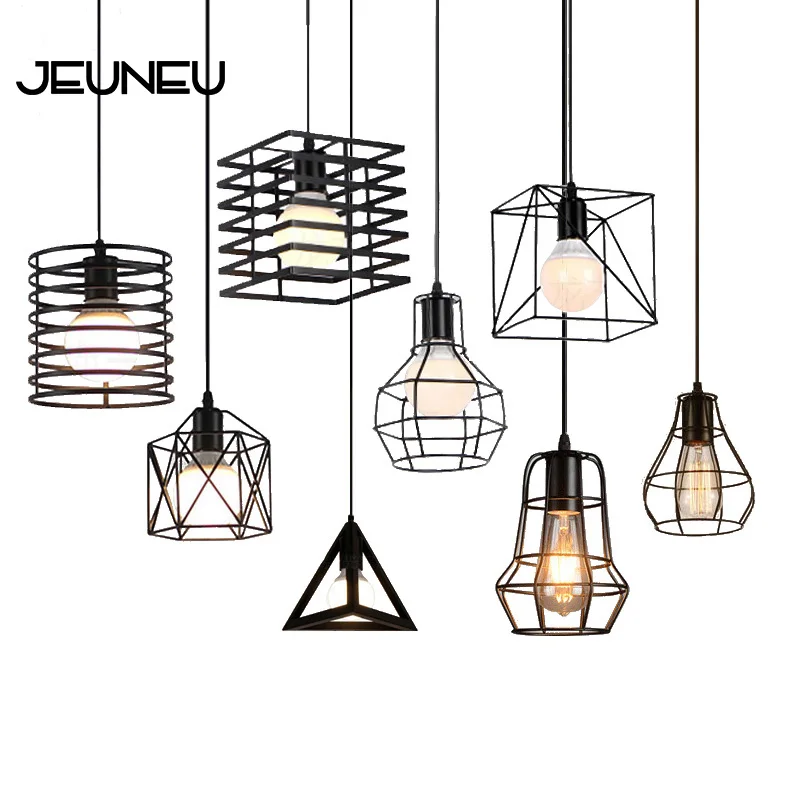 Подвесные светильники E27 в стиле ретро Лофт индастриал, черные железные светодиодные лампы для клеток для кухни, гостиной, спальни, коридора, ресторана, 110 В, 220 В
