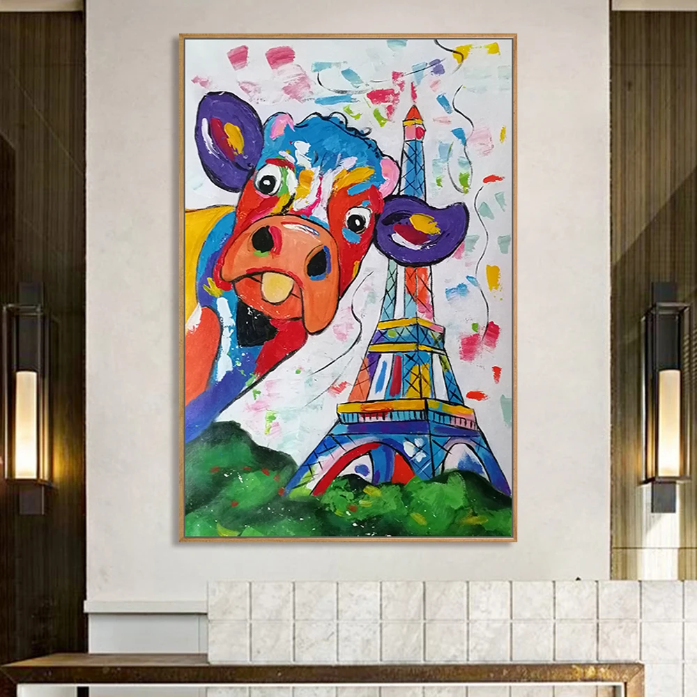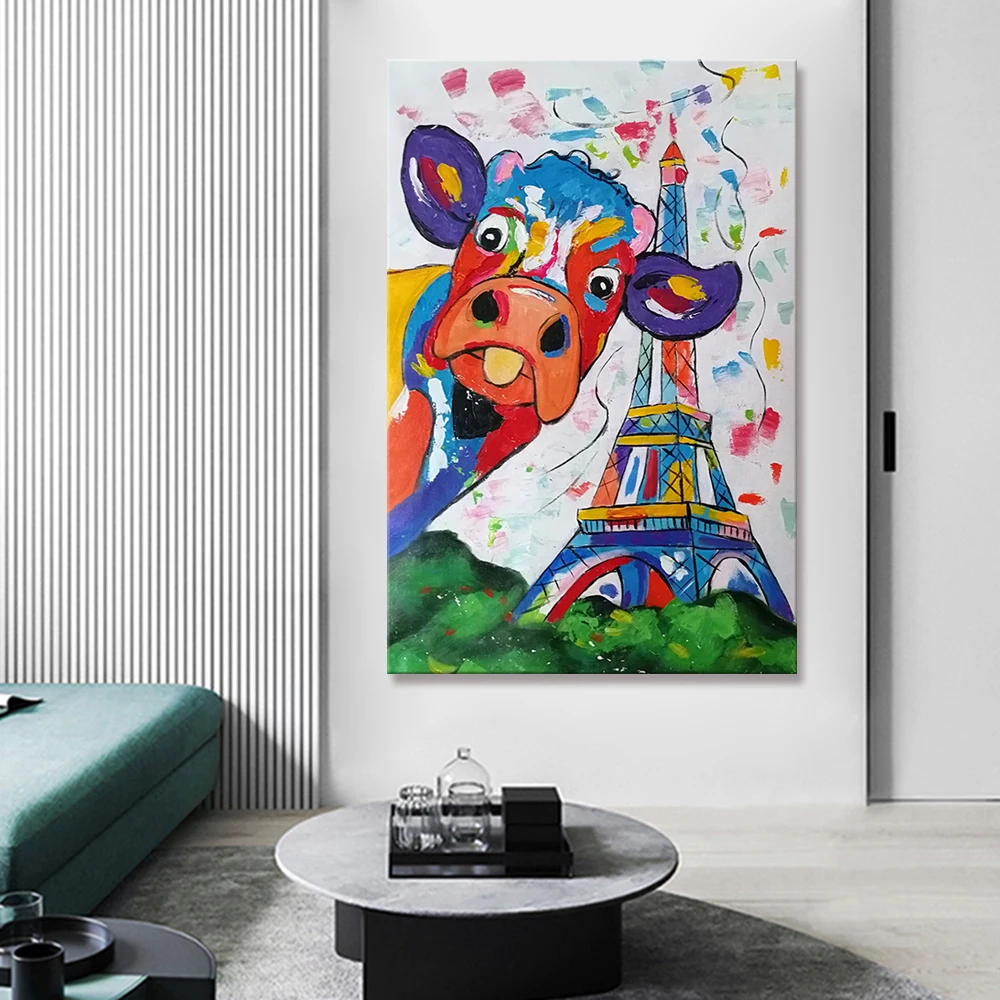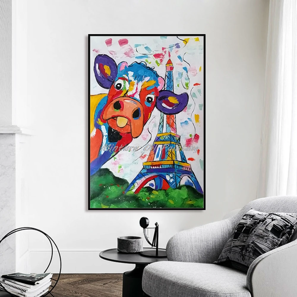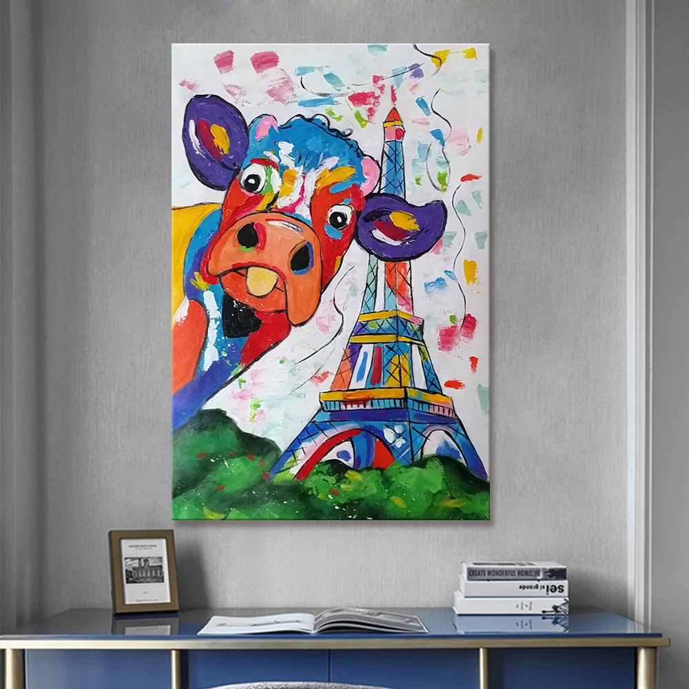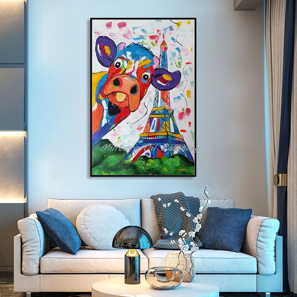 Настенная картина Mintura для гостиной, Масляные картины на холсте, ручная роспись коров и башен, декор для отеля, офисный декор, искусство без рамки.