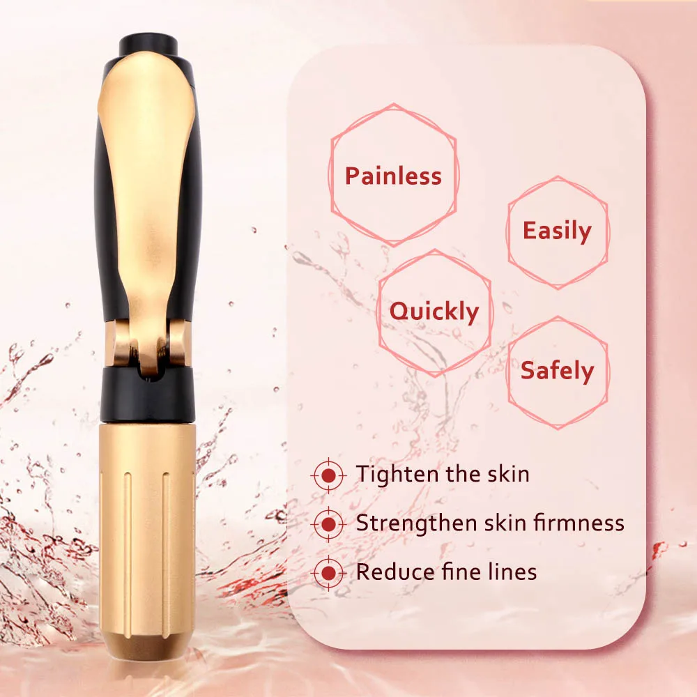 Различные стили имеют различную глубину впрыска, чем больше глубина, тем новый обновленный стиль. Он хорош для использования, лучшего эффекта. Описание товара: Тип: ручка с гиалуроновой кислотойХарактеристики: удаление кровеносных сосудов, омоложение кожи, темные круги, удаление морщин, потеря веса, увлажнение, отбеливание, увлажнениеМатериал: нержавеющая сталь (Профессиональная Медицинская нержавеющая сталь)Стиль съемки: мульти-съемкаГлубина впрыска: 6-8 мм Принцип работы: Пружина и поршень, которые позволяют под давлением, быстро и равномерно инъекционные наркотики под кожу через отверстие диаметром 0,1 мм, который находится в два раза меньше, чем иглы толщины для формовочной машины!С помощью энергии механического действия пружина и специальный поршень в аппарате позволяют, под давлением, быстро, но мягко толкая поток препарата через Микроскопическое отверстие в подкожной клетчатке.Препараты всасываются намного лучше и быстрее, чем с введением иглы, что было подтверждено в серии исследований и тестов, проводящихся в разных странах мира.Идеальное решение для тех, кто склонен к рубцам и подкожным клеткам. Преимущества :* Безболезненная инъекция* Инъекция без иглы устраняет риск заражения иглой* Не оставляет шрамов и следов от проколов кожи иглой* Лучшее и быстрое поглощение лекарственных средств* Строго Подкожная инъекция-устраняет риск проникновения препарата в мышцы* Быстрый, легкий и безопасный* Отдельная и экономичная дозировка препарата Примечание: если раньше вы не могли использовать гиалуроновые наполнители (или другие косметические средства), вам не лучше проконсультироваться с косметологом.