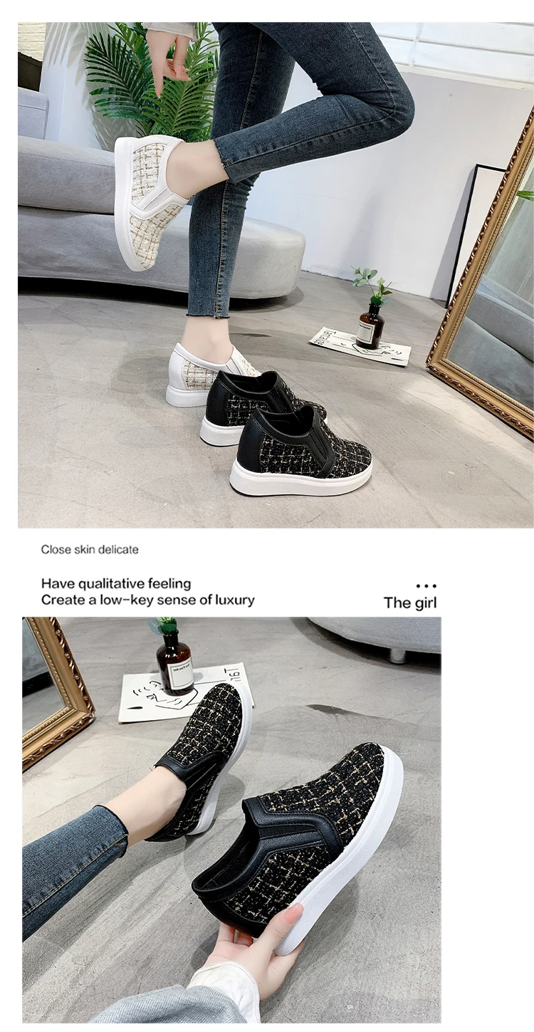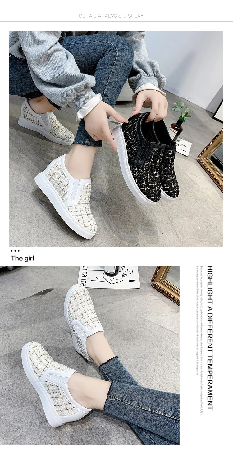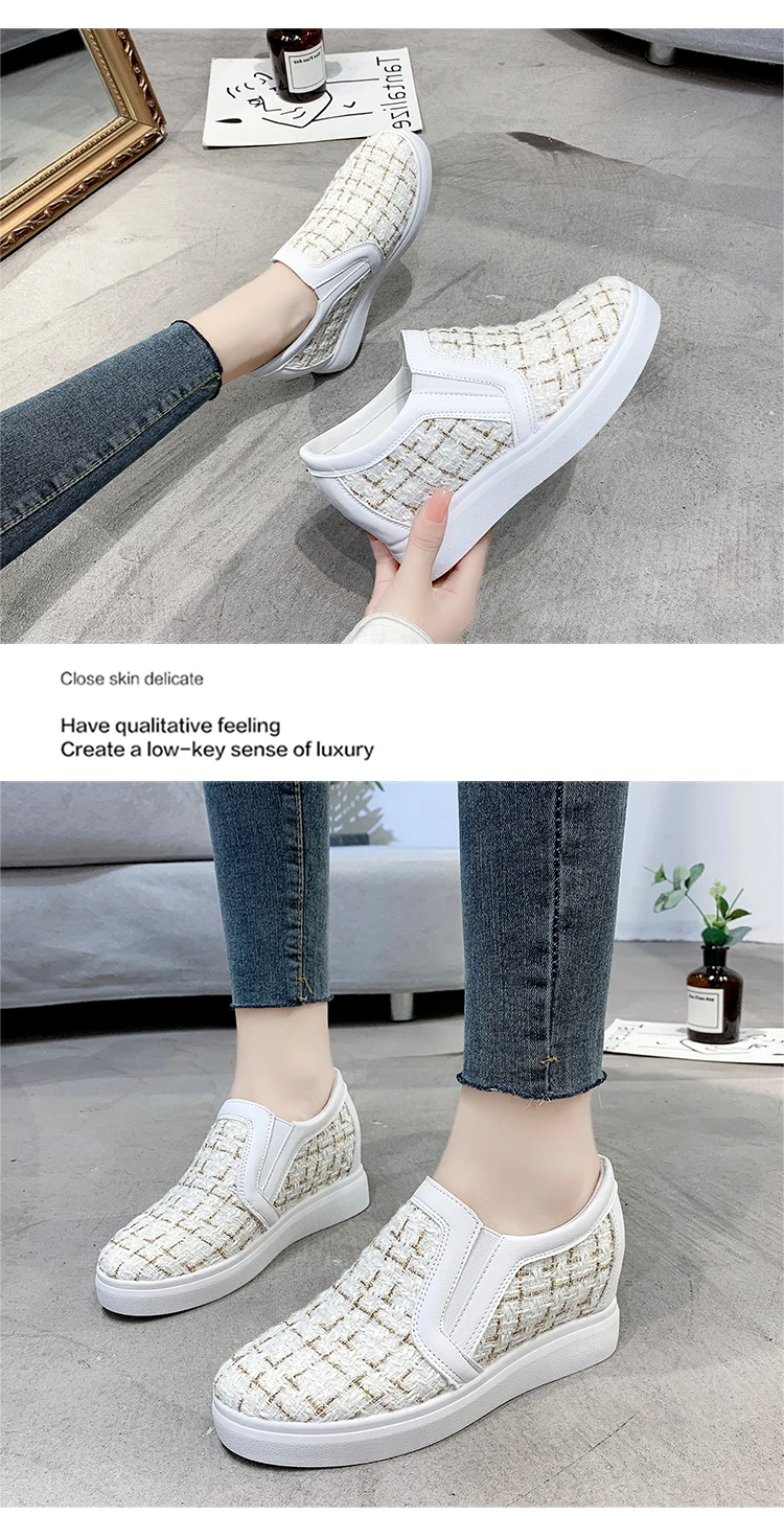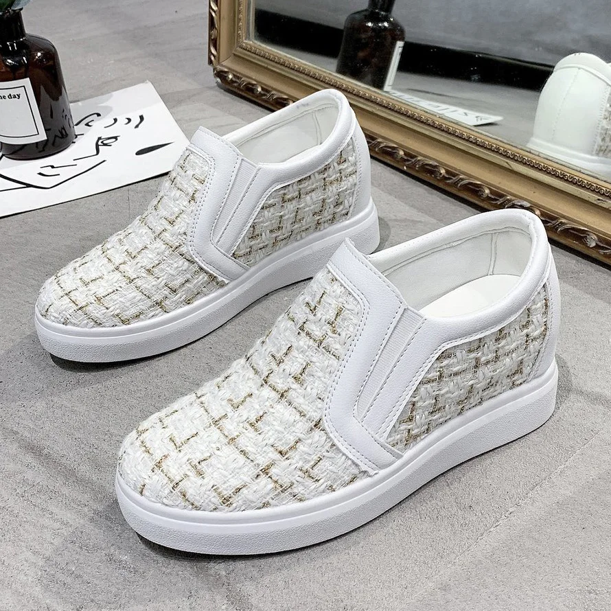Кроссовки женские на платформе, без шнуровки, дышащие, белые, обувь для увеличения роста, 2022