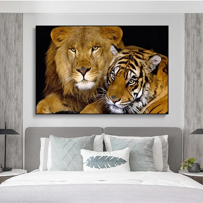 Современные животных художественные плакаты и принты настенный художественный холст Современная Абстрактная живопись Лев и тигр картина для Гостиная украшение дома