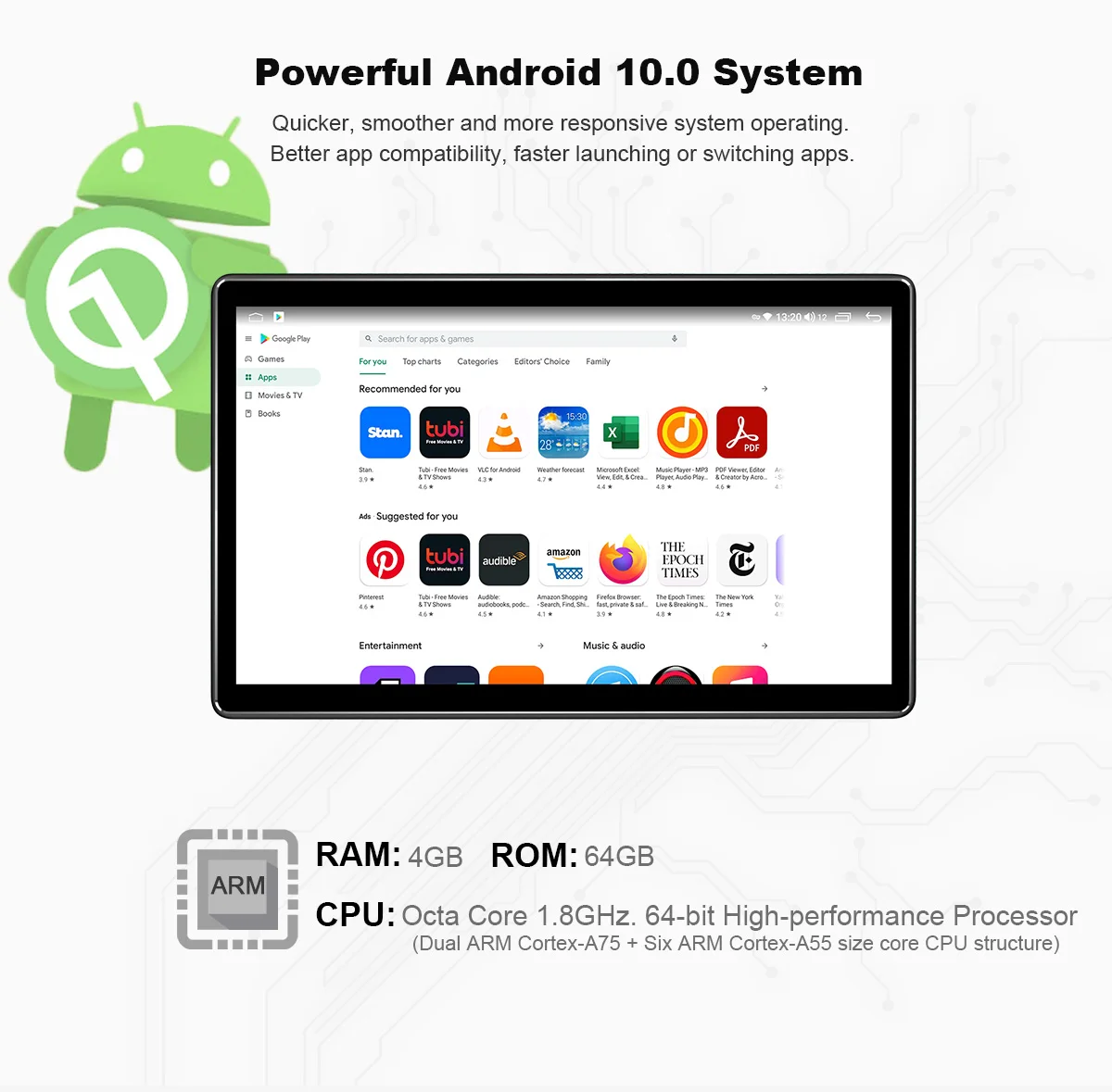 Эта модель имеет две версии, одна версия-4 Гб + 64 ГБ, другая-6 ГБ + 128 Гб, другая версия имеет разную цену.1. Совместимость с Android 10,0, UIS7862 восьми-ядерный 1,8 ГГц двухъядерный процессор ARM Mali G52 614,4 МГц 11,6 дюймов 1920*1080 IPS HD Экран2. Супер аппаратная производительность, 4 Гб RAM + 64 Гб/6 Гб ROM + 128 Гб RAM Octa Core3. Интернет развлечения, встроенный WIFI модуль * 4G модуль, супер быстрое подключение к Интернету.4. Поддержка Google Play Store, вы можете скачать множество приложений5. Поддержка обратной камеры aftermarket/DVR/OBD2/DAB +/TPMS, вам нужно купить отдельно6. Поддержка быстрой загрузки, быстрое включение радио7. Поддержка кнопок управления рулевым колесом (без Canbus автомобиля)8. Bluetooth для handfree, Синхронизация Bluetooth телефонной книги9. Встроенный DSP, делает радио лучше звук и более Регулируемый эквалайзер10. Поддержка беспроводной carplay и Android autoНовый JOYING блок теперь поставляется с оптическим SPDIF цифровой аудиовыход * коаксиальный цифровой выход. Для максимального качества звука вы можете напрямую подключить внешний усилитель/DSP к цифровому выходу SPDIF; Если ваш внешний усилитель/DSP не поставляется с входом SPDIF, вам нужно будет подключить усилитель/DSP через FL/FR out & RL/RR out.