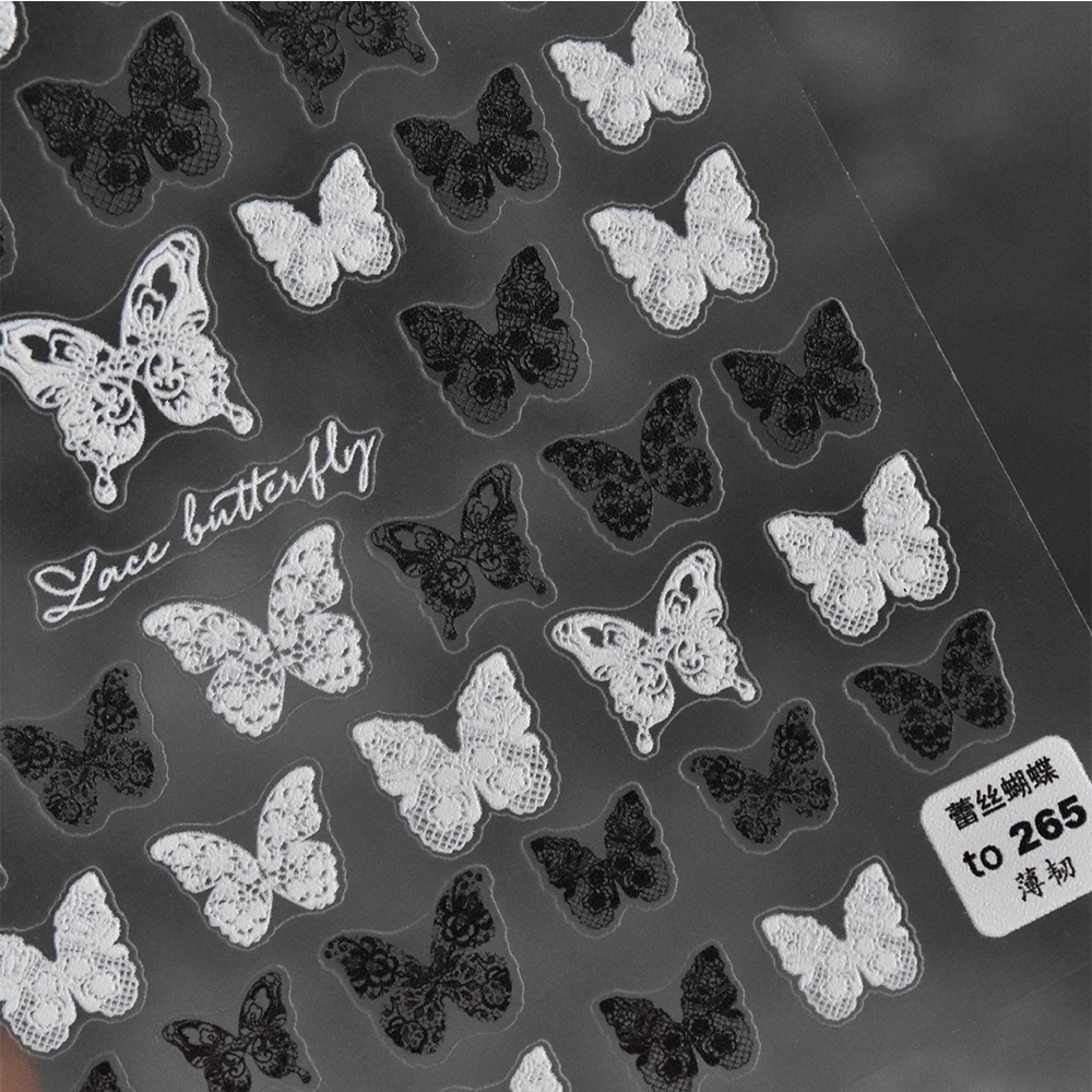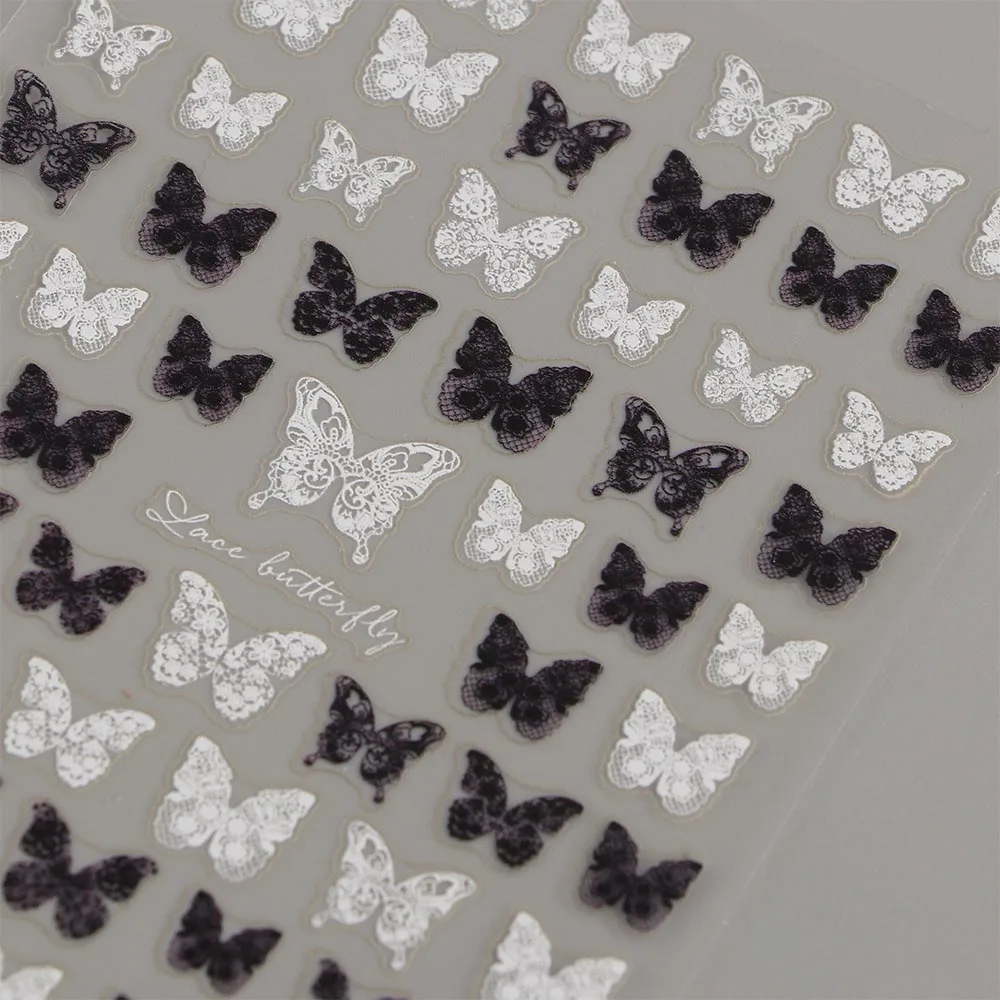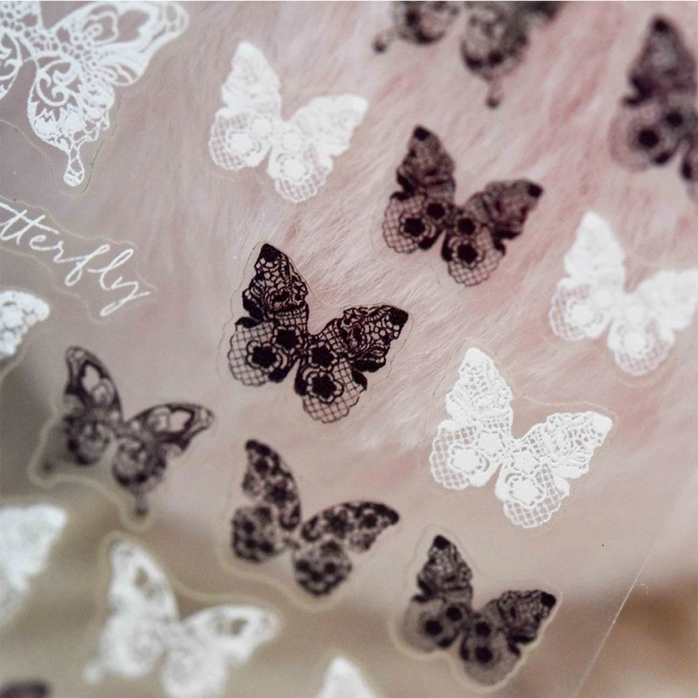 5D черно-белые кружевные наклейки для ногтей с бабочками, самоклеющиеся фольги для ногтей с цветком розы, наклейки для ногтей, инструменты для маникюра