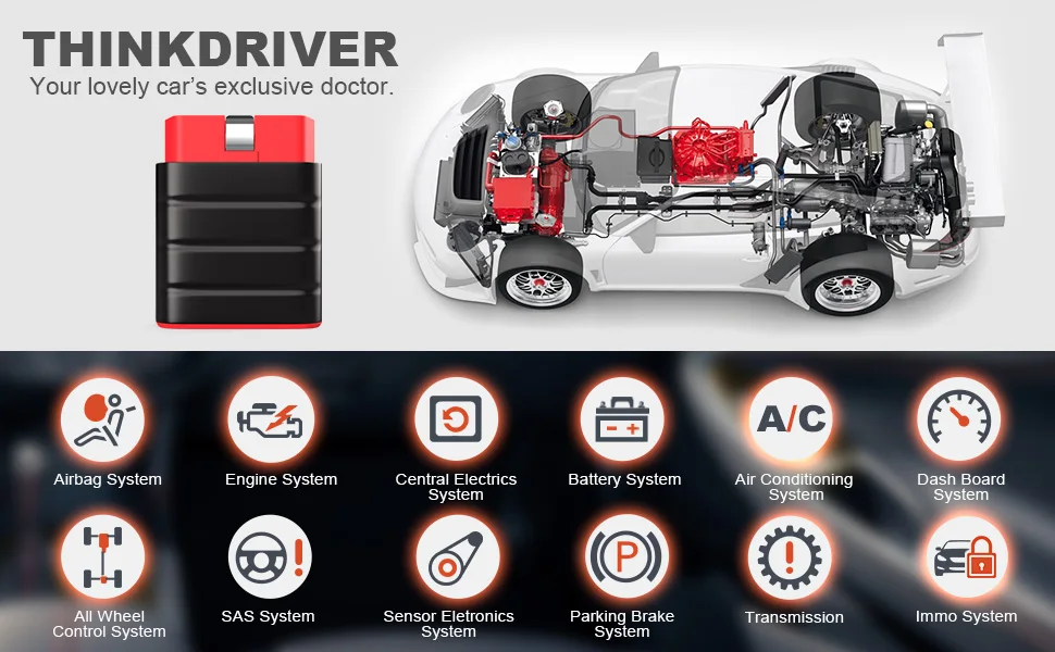 Те же всесторонние функции, что и диагностический инструмент стоимостью тысячи долларов, но в гораздо более низкой цене диагностические функцииTHINKDRIVER-это умный диагностический инструмент Bluetooth для DIYers и автомобильных собственников, который очень близок к профессиональным диагностическим инструментам. Помимо полной функции OBDII, THINKDRIVER поддерживает полную диагностику системы автомобиля, чтобы помочь вам узнать каждый модуль в автомобиле. До свидания с нормальным OBDII dongle! Мы стремимся минимизировать цену THINKDRIVER, чтобы позволить всем автомобилям проверить полную систему транспортного средства, гораздо больше, чем OBDII.