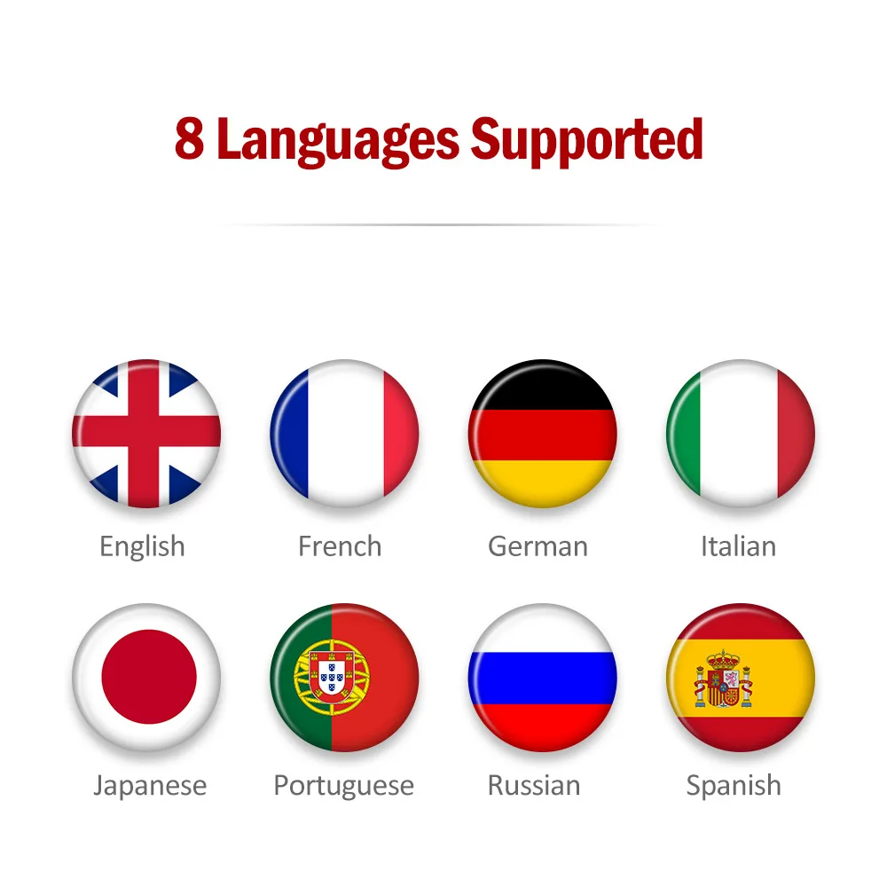 Китайский, английский, итальянский, немецкий, японский, русский, французский, испанский, португальский