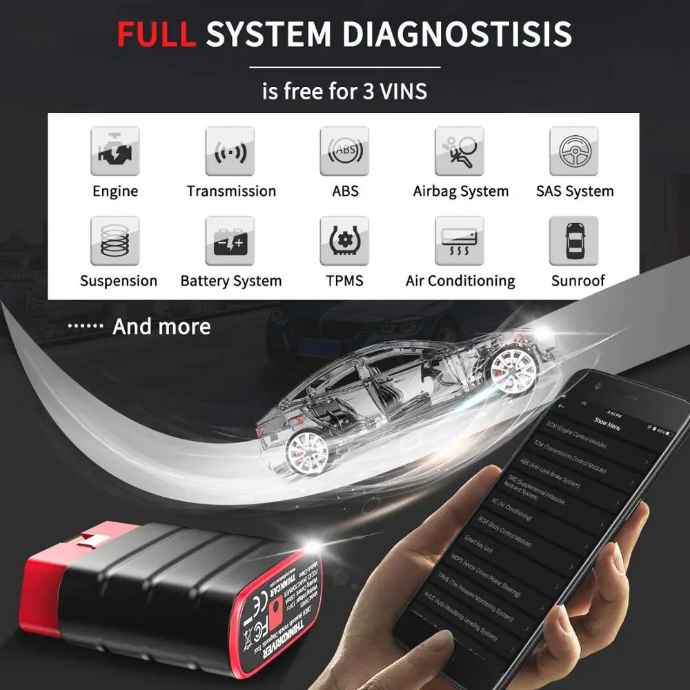 1. Для новых клиентов Бесплатная полная система диагностики для 3 автомобилей вин сейчас!2. Больше марок автомобилей. (Индийские, малайзийские автомобили)3. Новейшая версия приложения "ThinkDiag"