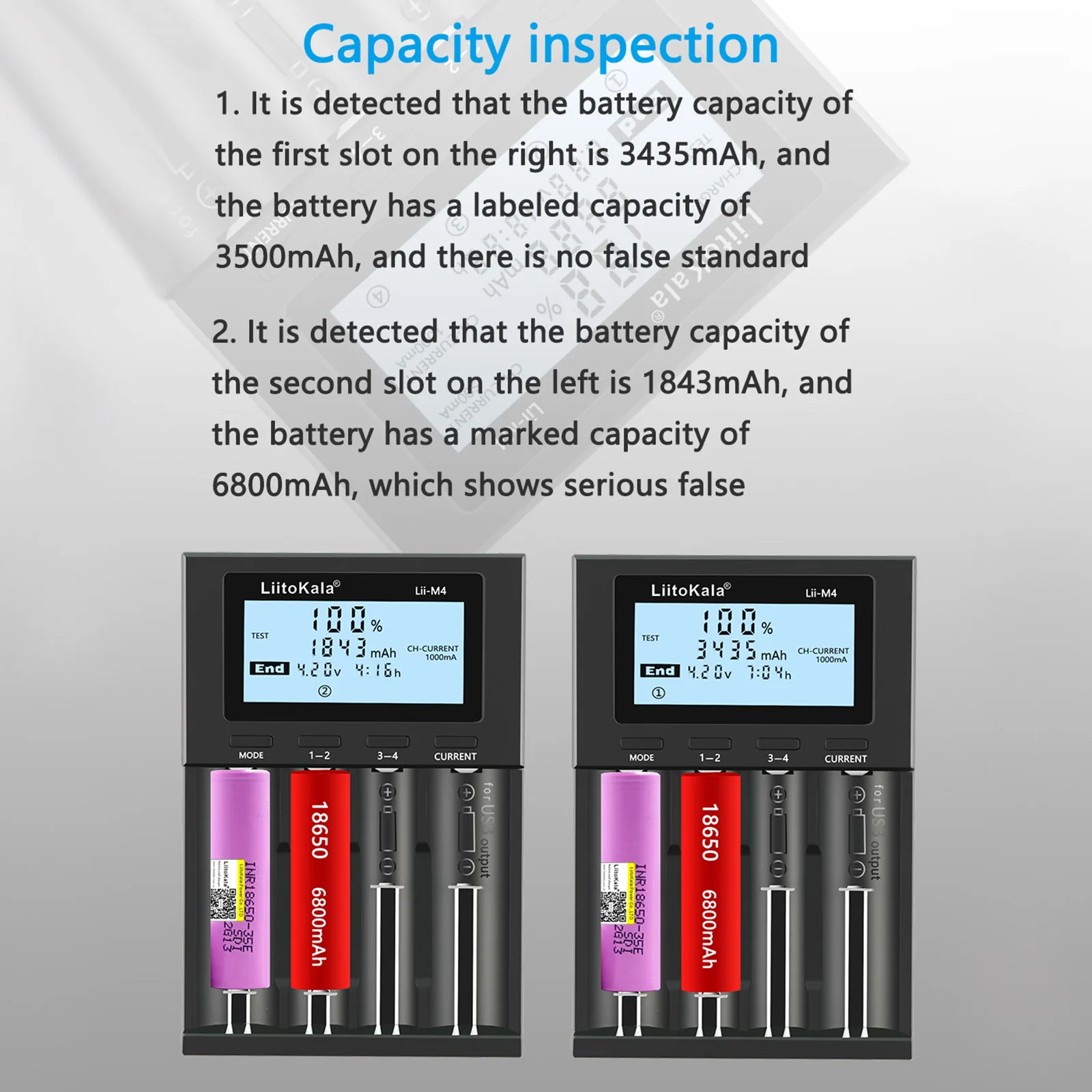 Особенности:4 слотов для карт независимой зарядкой и независимая система управления, Тип-C 5V/2A входного сигнала.Множественные функции защиты от перезарядки, переразряда, короткого замыкания и может автоматически определить сломанный/бракованный аккумулятор (не будет заряжать плохие батареи). Зарядка при постоянном напряжении и токе.Встроенный ЖК-экран показывает режим работы (зарядка/тест), напряжение батареи (в), рабочий ток (мА), время зарядки (ч), емкость батареи (мА · ч), процент электроэнергии (%) и другие параметры ясны с первого взгляда.2 дополнительных тока зарядки: 500мА * 4/1000мА * 2. Зарядный ток зарядного устройства по умолчанию составляет 500 мА, а ток 500 мА или 1000 мА можно выбрать для зарядки по току (току) в течение 8 с. Li-Ion: 500mA/1000mA и Ni-mh/Ni-cd: 500mA.Может заряжать аккумуляторы разных спецификаций (18650/26650.../AA/AAA) одновременно. Характеристики:Название бренда: LIITOKALAНомер модели: LII-M4Тип: зарядное устройствоЦвет: черныйВходное напряжение: 5 В/2 а постоянного токаТок зарядки литиевой батареи: 4,20 в 500 мА * 4/1000мА * 2NiMH ток зарядки аккумулятора: 1,48 в 500 мА * 4Характеристики аккумуляторной батареи: 18650, 26650, 14500, AA, AAA и т. д.Выход USB: 5 В --- 1000 мАТестовый ток разряда: 500 мАРазмер посылка: 18*12,3*3,8 см/7,1*6,7 * 2.0inВес посылка: 253 г/8,9 унций Посылка:1 * зарядное устройство LII-M41 * USB кабель1 * Руководство пользователя (китайский и английский)