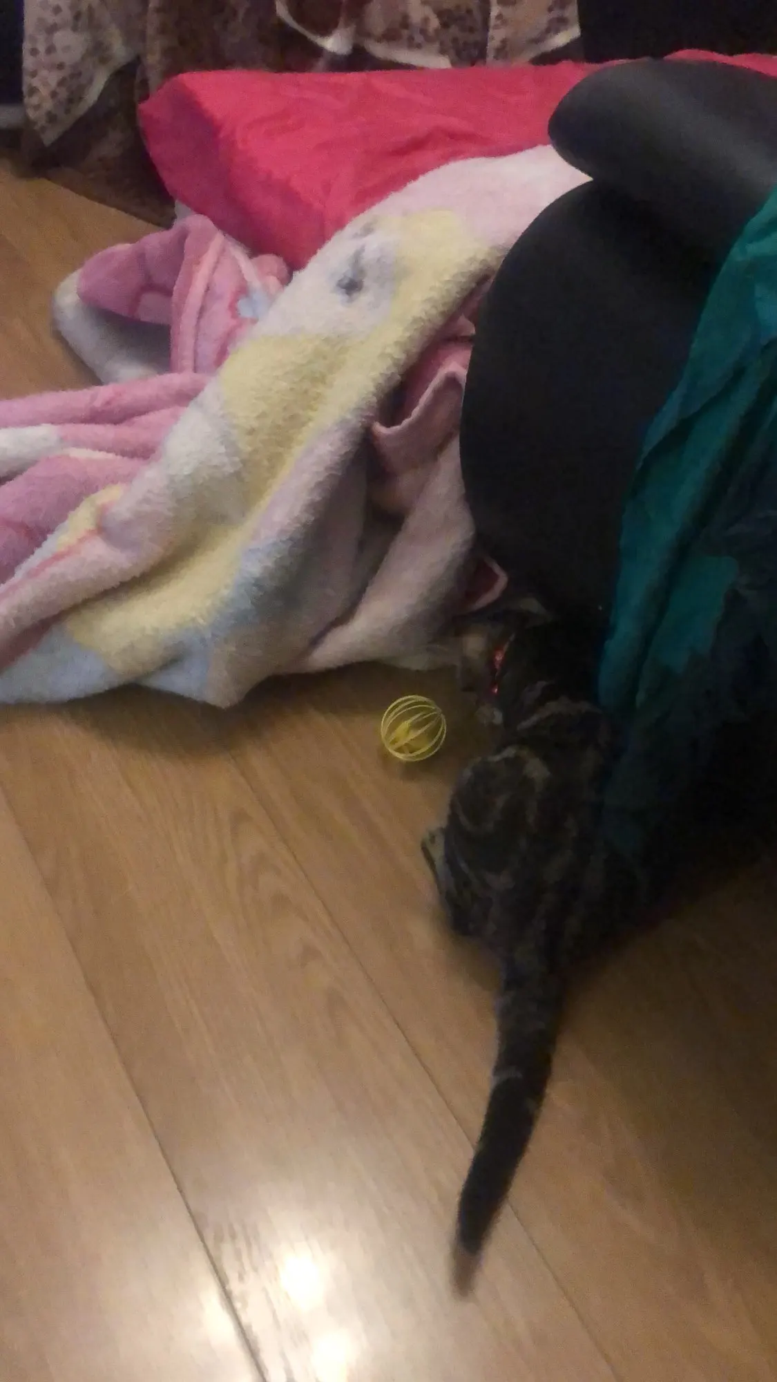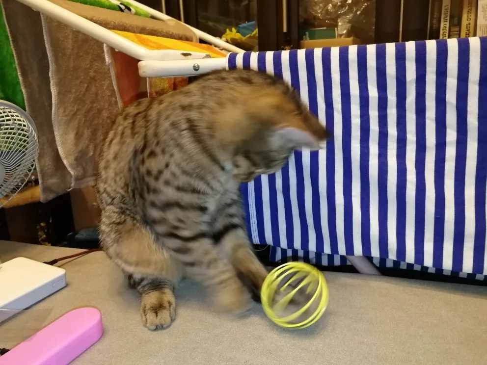 Кошка довольна. На ночь приходится прятать иначе при ночных тыгтыгах этот шар гремит как адская карусель