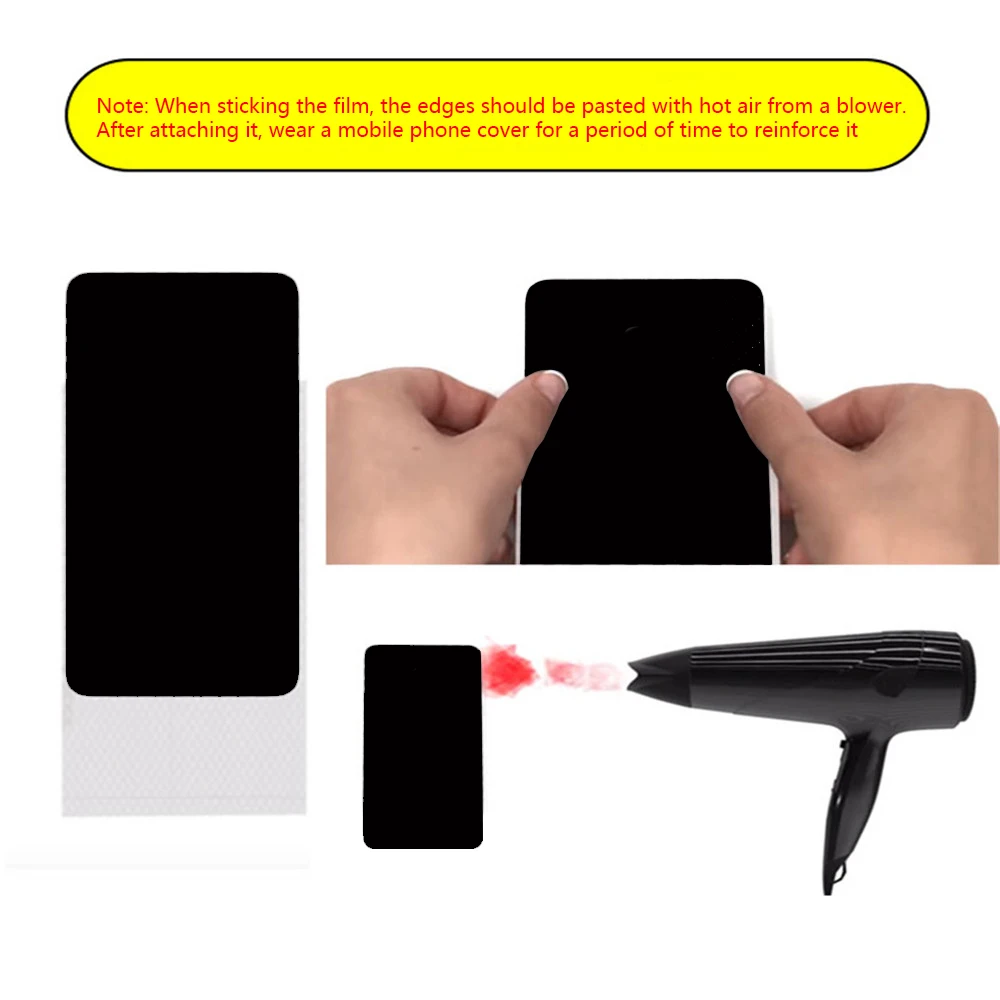 * Поскольку телефон имеет дугу, рекомендуется использовать фен, чтобы он приклеился близко к телефону при первом приклеивании.