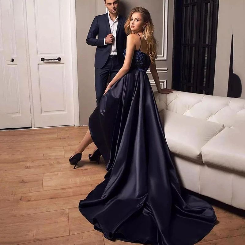 Женское вечернее платье с высоким разрезом, длинное синее платье в ...