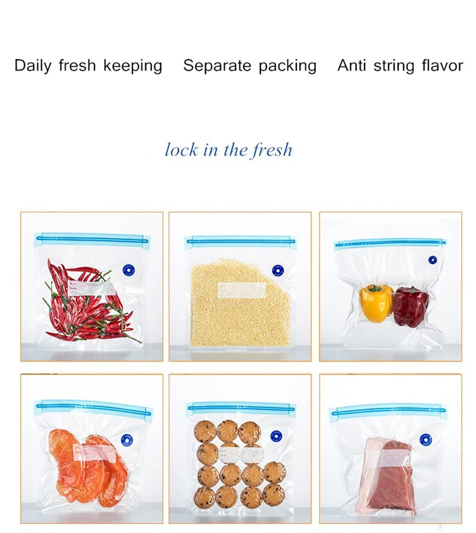 Ручной насос вакуумные пакеты для еды, герметичный пакет для хранения, многоразовый пластиковый контейнер для хранения, пакеты с замком на молнии для дома, кухни, упаковка