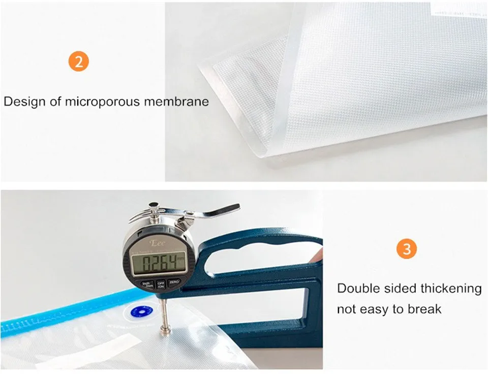 1. Этот Вакуумный пакет обладает характеристиками длительного хранения, защиты окружающей среды и нетоксичен. 2. Его можно использовать от-20 ℃ до 120 ℃ и перерабатывать. 3. С этой сумкой для хранения свежих продуктов вы можете упаковать все виды еды отдельно, чтобы предотвратить перекрестный вкус и продлить свежесть еды. 4. Обладает хорошими герметичными свойствами, без утечки воздуха, без герметизирующей машины, может вручную откачивать воздух, поэтому простота в эксплуатации. 5. При хранении порошкообразной пищи необходимо упаковать в одноразовый пакет для хранения свежести, а затем положить в вакуумный пакет для герметизации и удаления воздуха. 6. Острые продукты следует упаковывать в пакеты для хранения свежих продуктов, а затем класть в вакуумные пакеты, чтобы не прорваться через вакуумные пакеты.