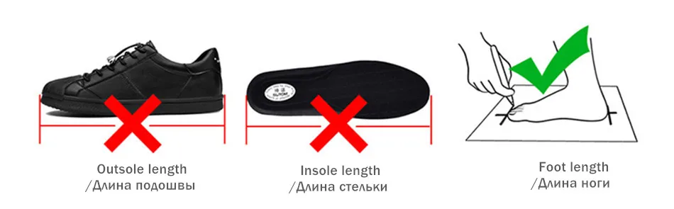 Примечание: Пожалуйста, выберите размер обуви в соответствии с длиной Вашей стопы, а не длиной стельки.