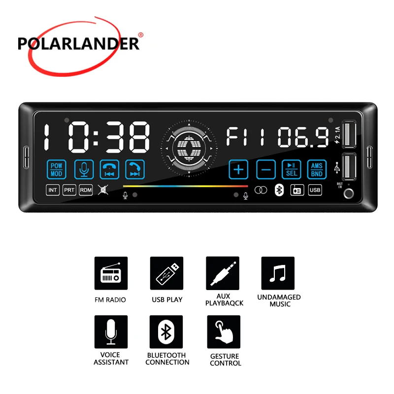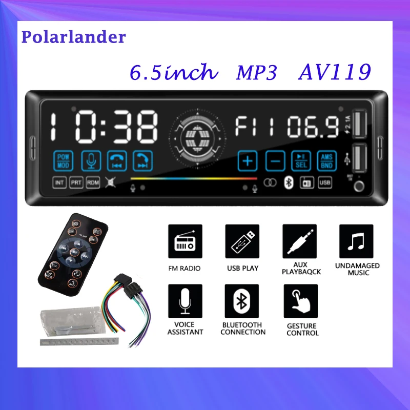 Магнитола автомобильная 1 Din, FM, 6,5 дюйма, с двумя USB-портами, MP3, Bluetooth, 12 В, голосовой ассистент, цветной дисплей AUX, сенсорный экран
