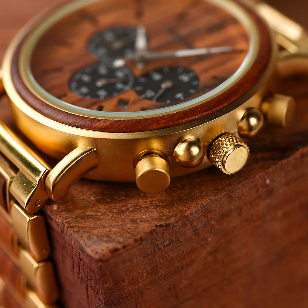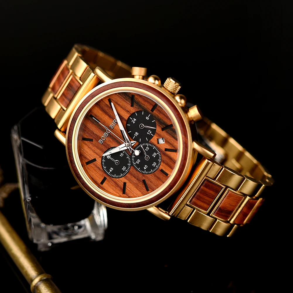 BOBO BIRD часы-браслет из деревянных Для мужчин часы класса люкс кварцевые наручные часы Топ Брендовые Часы с хронографом в деревянная коробка подарка для relogio masculino США склад