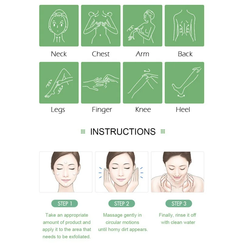 Эффективно удаляет омертвевшие клетки кожи на поверхности кожи, удаляет грязь на коже и сохраняет кожу чистой и свежей.