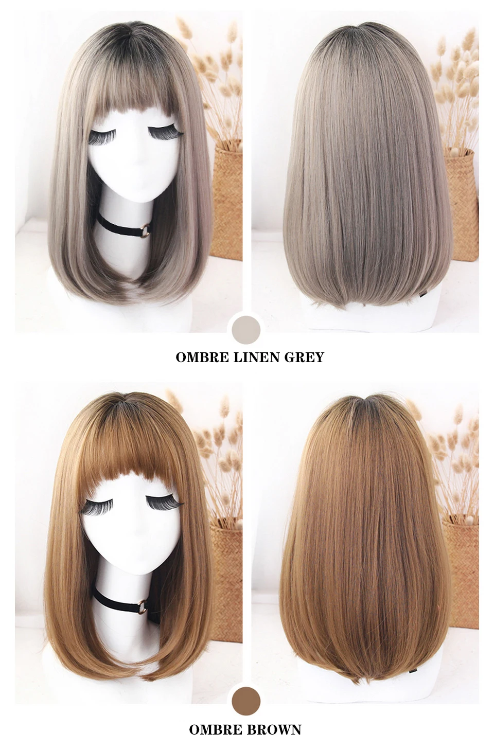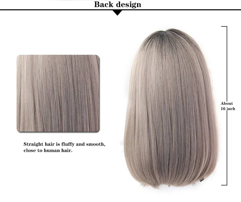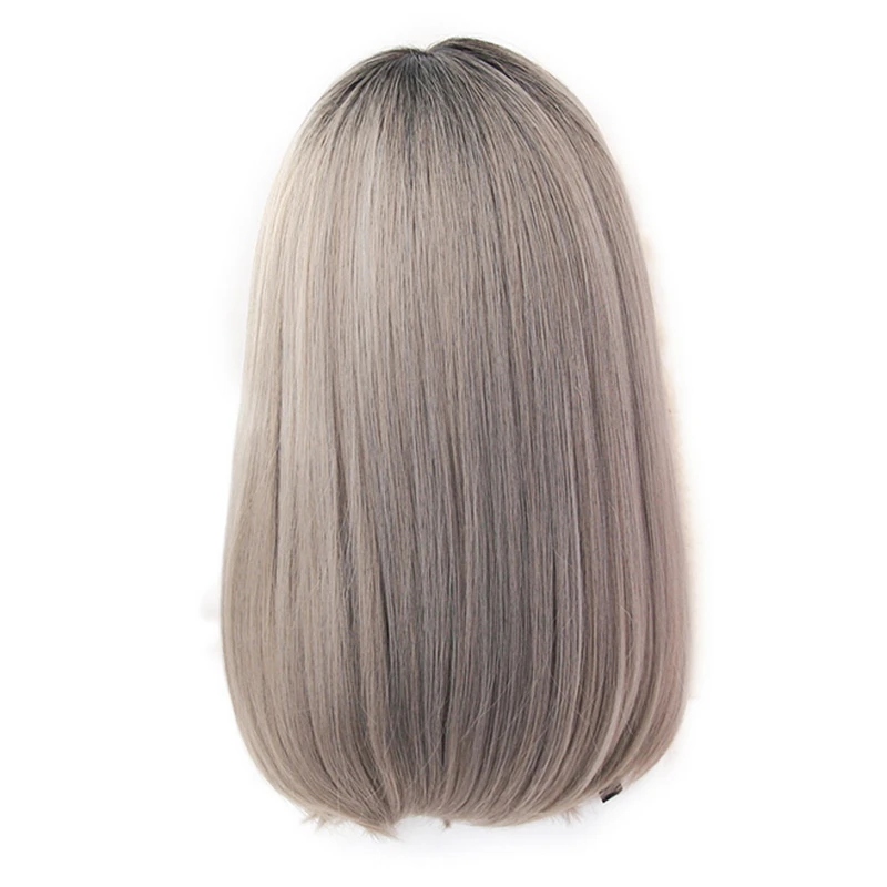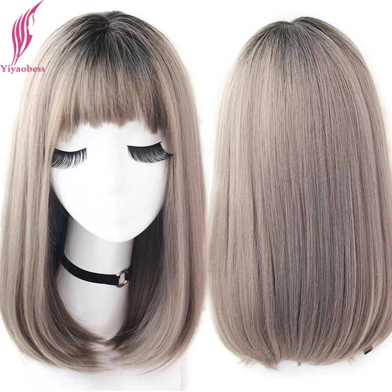 Парик Yiyaobess для женщин, искусственные волосы с челкой, прямые, черные, коричневые, льняные, серые, Омбре, 16 дюймов