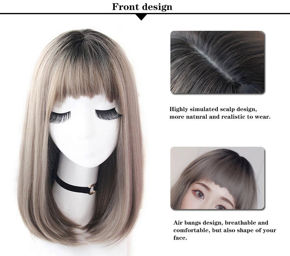 Парик Yiyaobess для женщин, прямой синтетический короткий с челкой,...