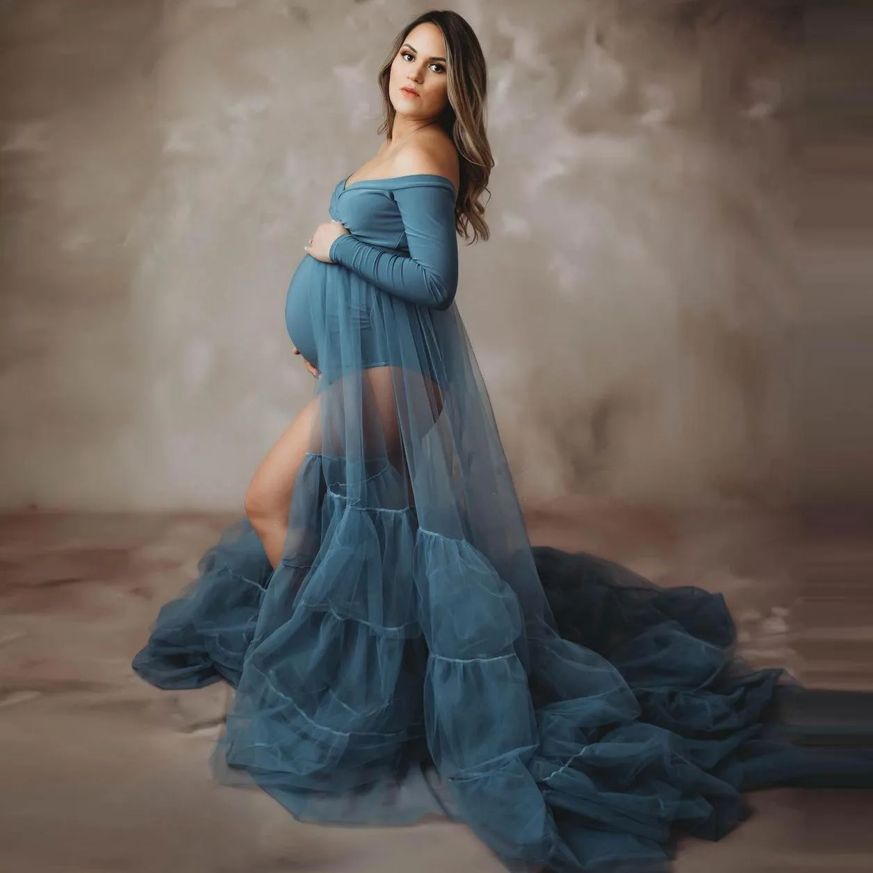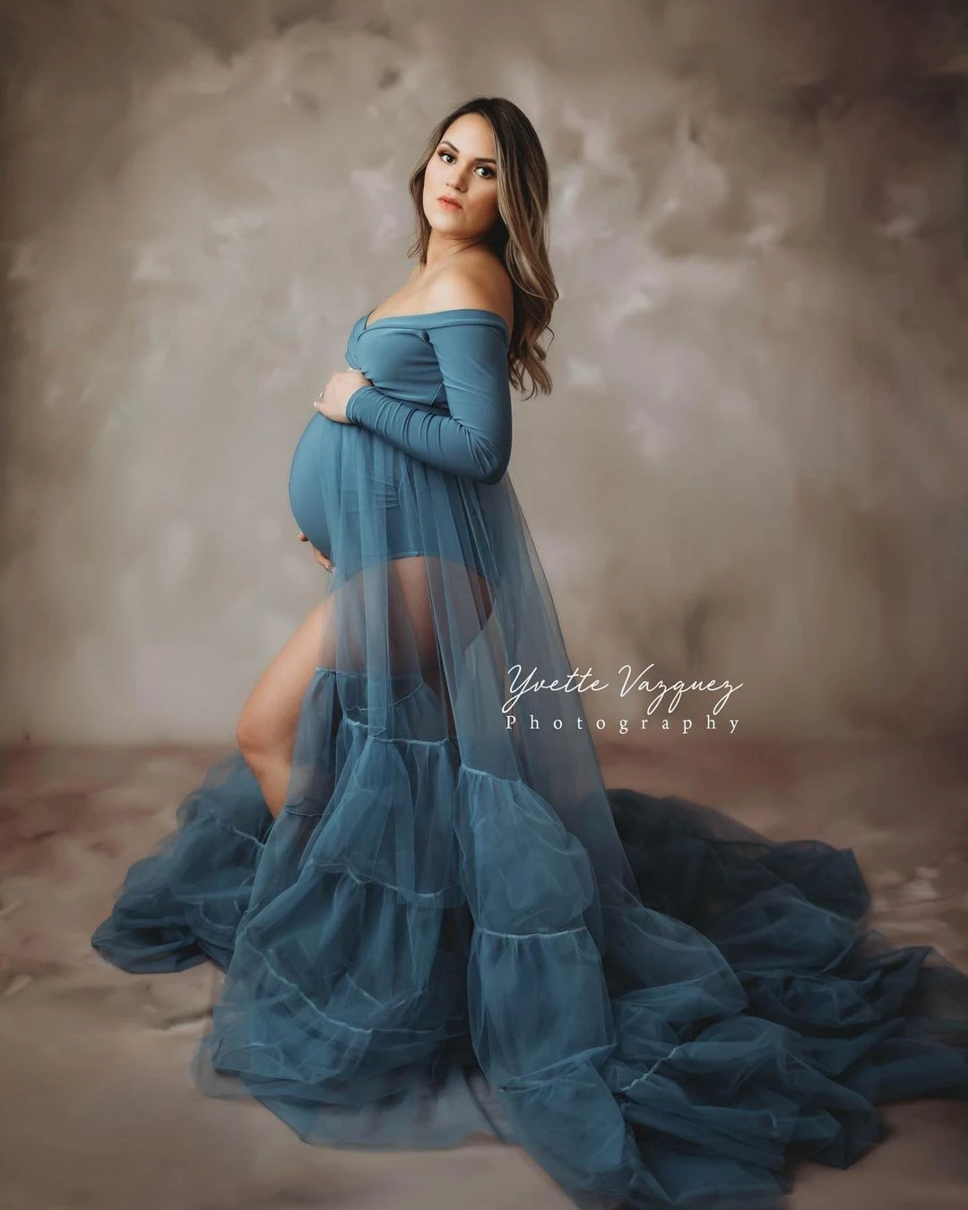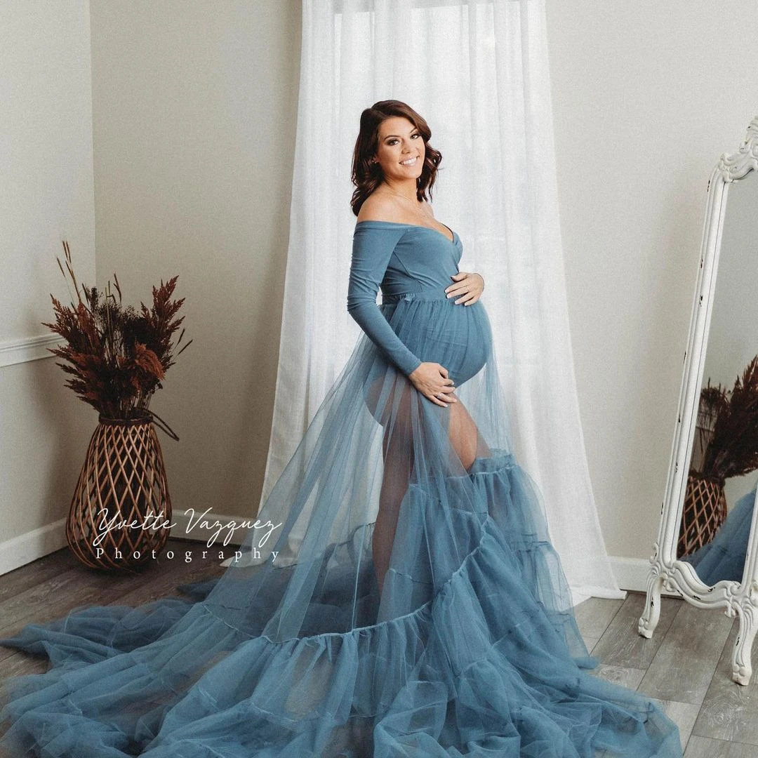 Высококачественный красивый тюлевый халат для беременных для фотосъ...