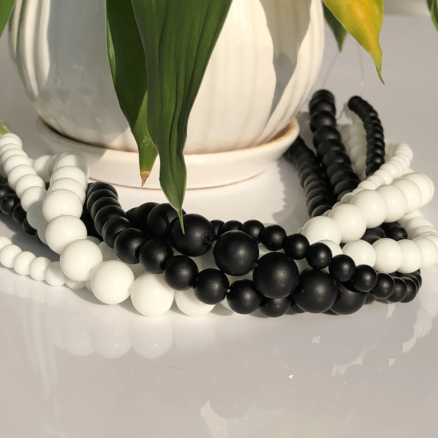 Натуральный камень 4-12 мм, матовый черный агат, белый оникс, Гладкие бусины россыпью для самостоятельного изготовления ювелирных изделий, изящных браслетов, ожерелий, аксессуаров