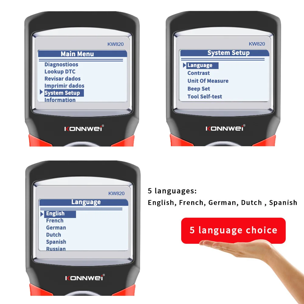 Автомобильный сканер KW820, многоязычный диагностический инструмент OBDII EOBD, считыватель кодов ошибок автомобиля, диагностический сканер на испанском языке