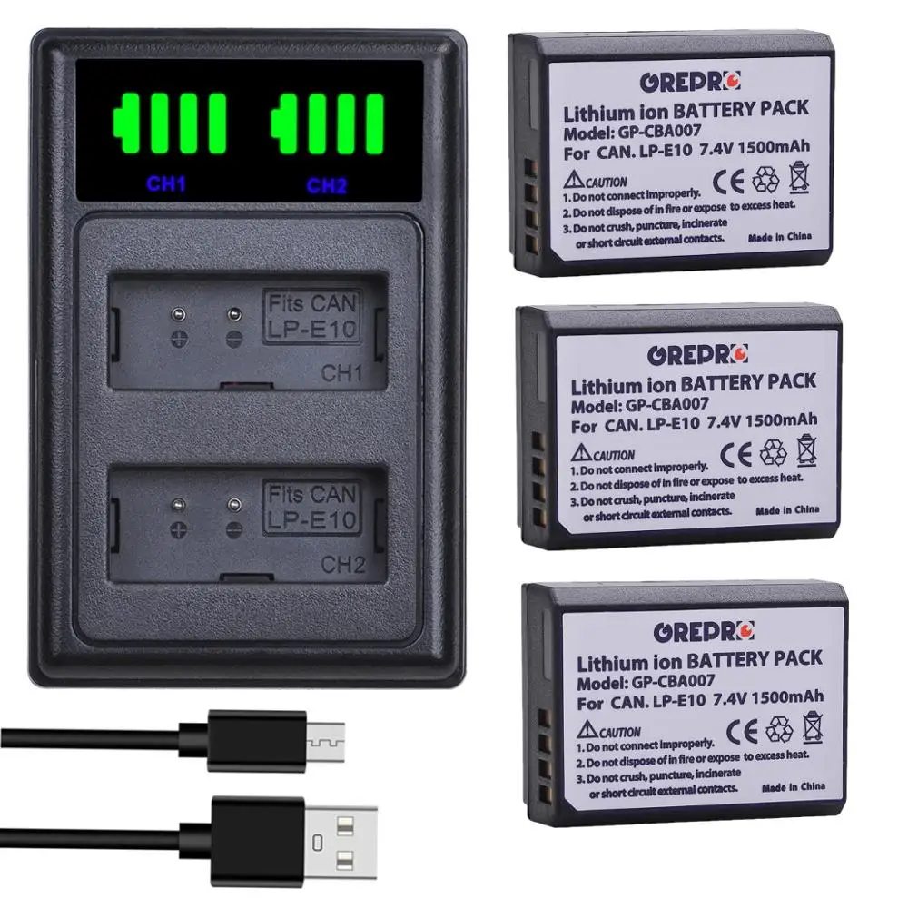 3 штуки в упаковке LP-E10 LPE10 Батарея с светодиодный USB LP E10 Батарея Зарядное устройство для Canon 1100D 1200D 1300D 2000D поцелуй X50 X70 Rebel T3 T5