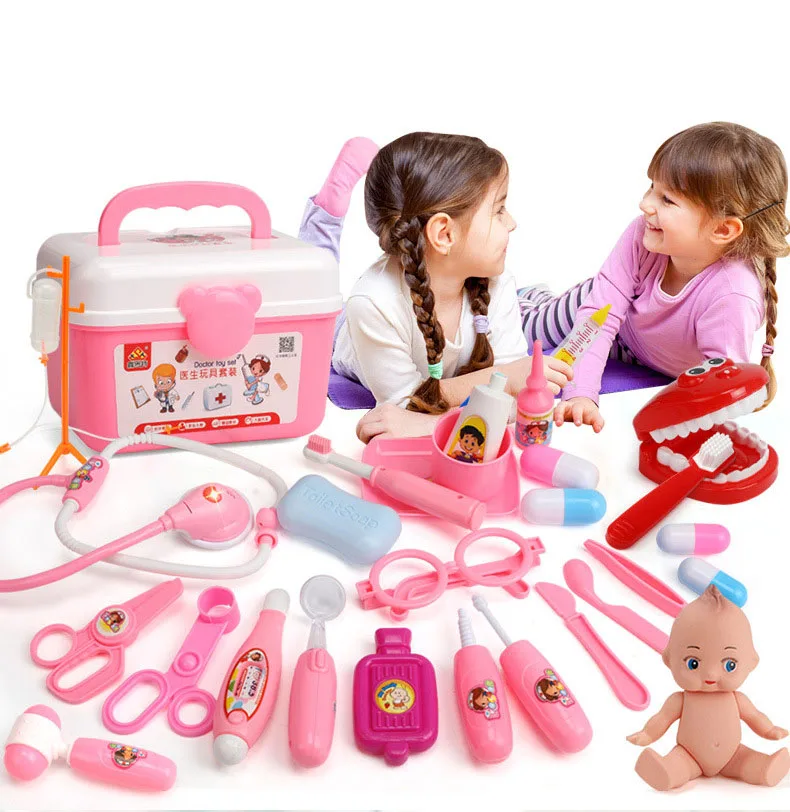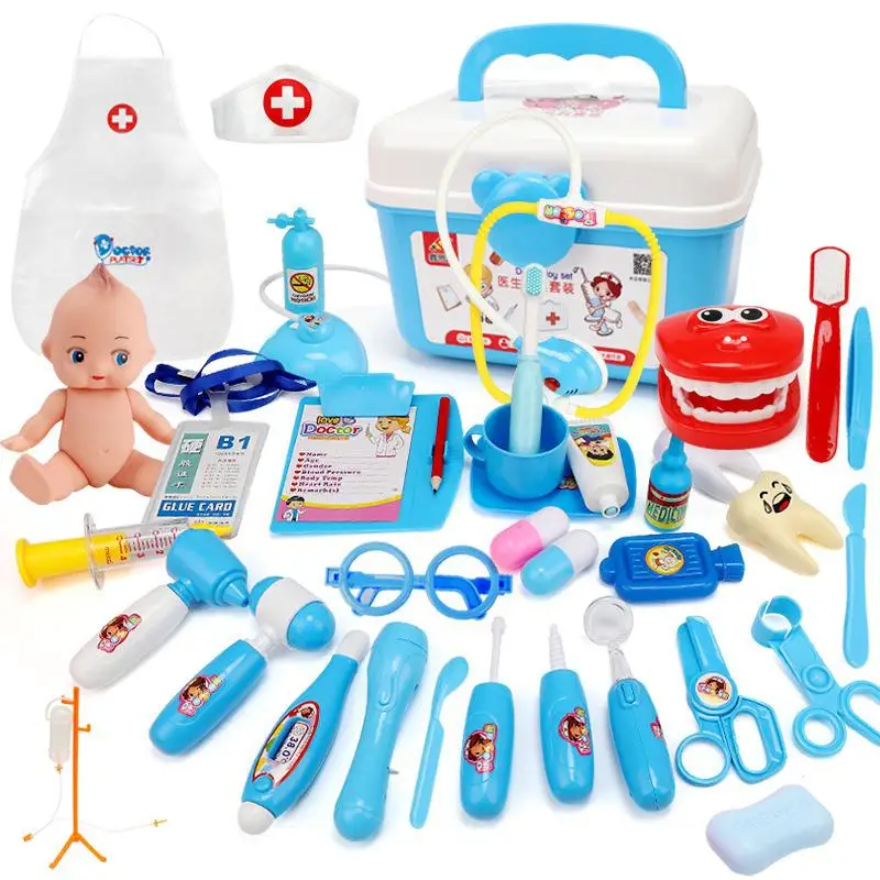 Семейная Игрушка сделай сам из акустооптического волокна, Детская кукла врача без одежды, набор игрушек, имитация медицинских инструментов, ящик для инструментов, подарок на день рождения для детей, 39 шт.