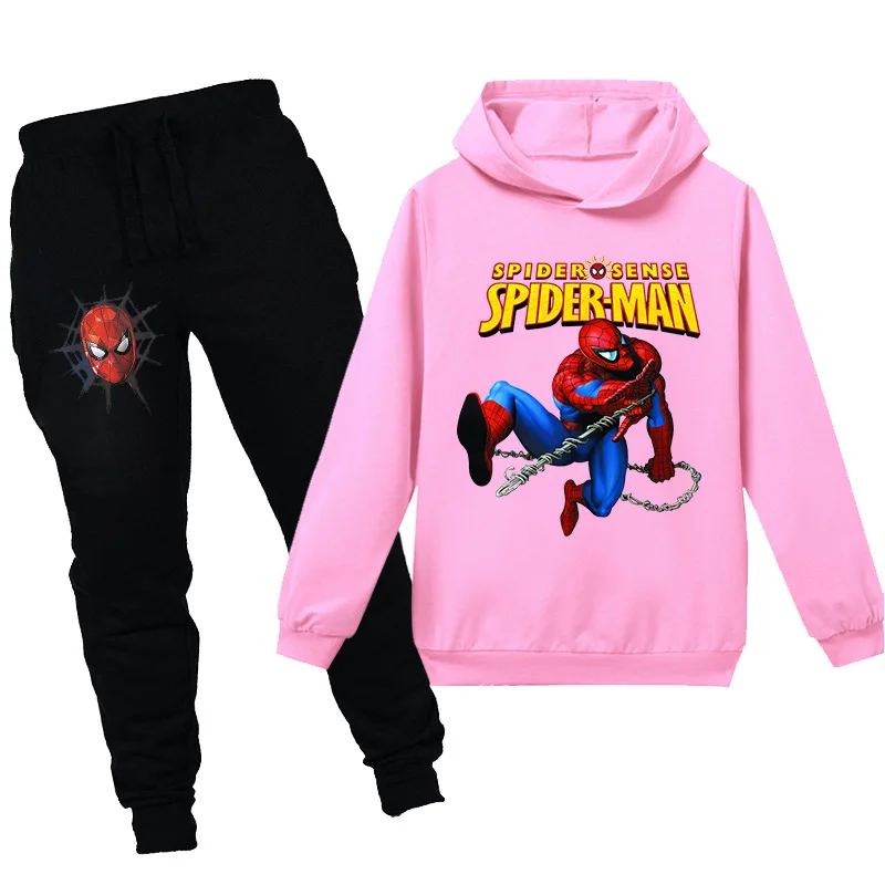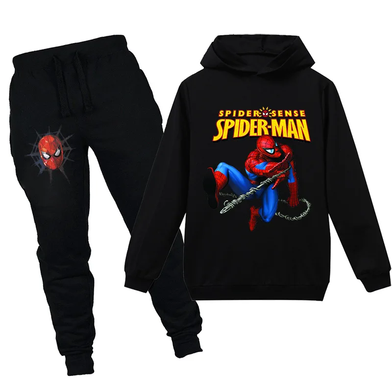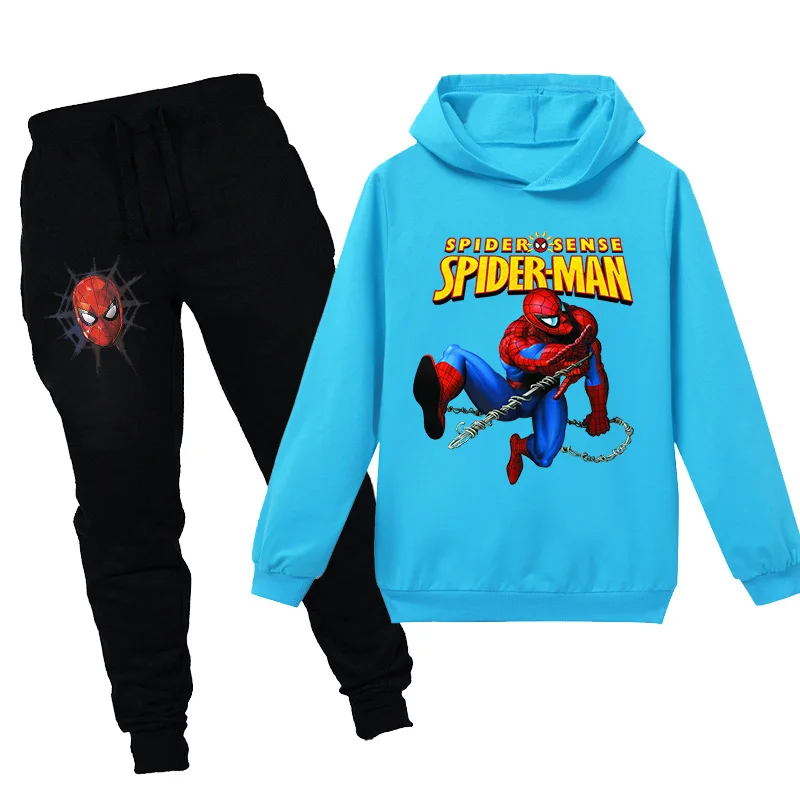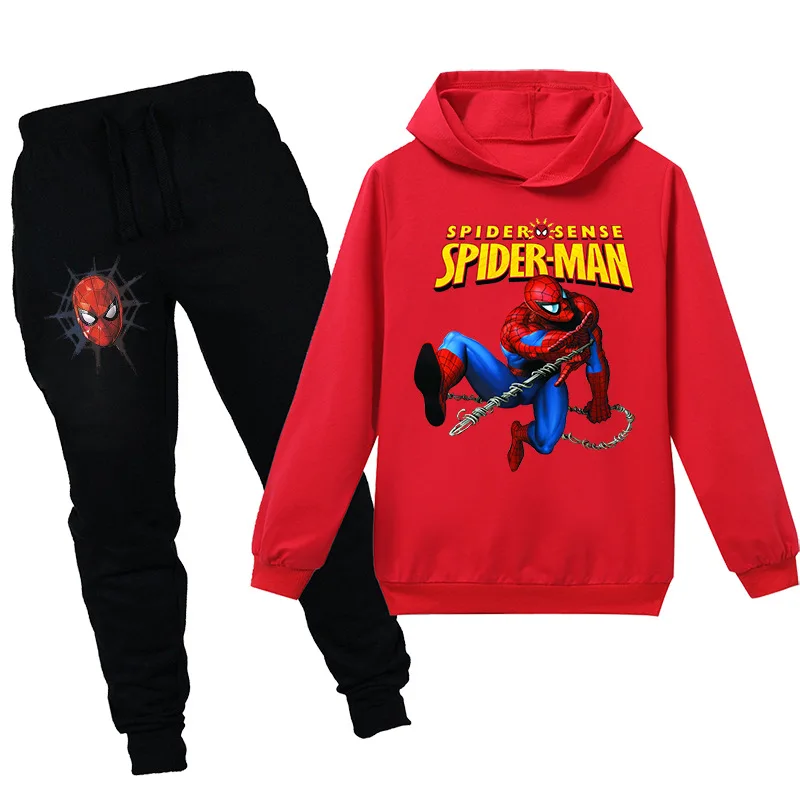 Весенне-летние детские комплекты одежды Disney, свитшот с рисунком Человека-паука + штаны, одежда из 2 предметов, детские спортивные костюмы для мальчиков