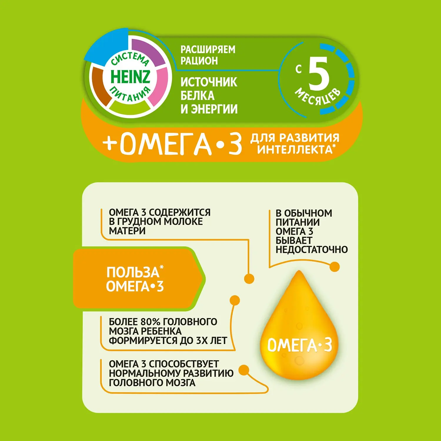 *Каша Heinz содержит докозагексаеновую кислоту (DHA), которая является одним из необходимых компонентов для развития головного мозга.