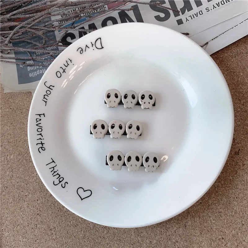 Женские акриловые заколки Goth, винтажные, в стиле Харадзюку, Y2K, футболка с изображением черепа и волос, подарки для девочек
