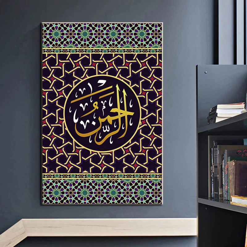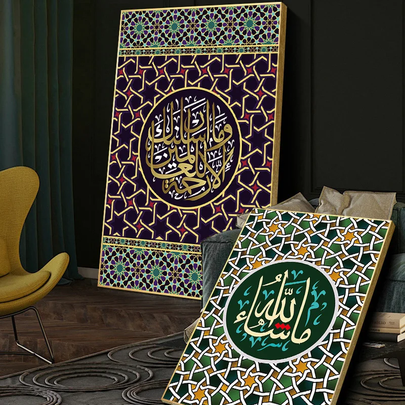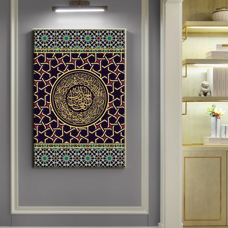 Художественные постеры, напечатанные на стену, масляная живопись, религия, мечеть Рамадан, домашний декор, Аллах мусульманство ислам, холст с каллиграфией
