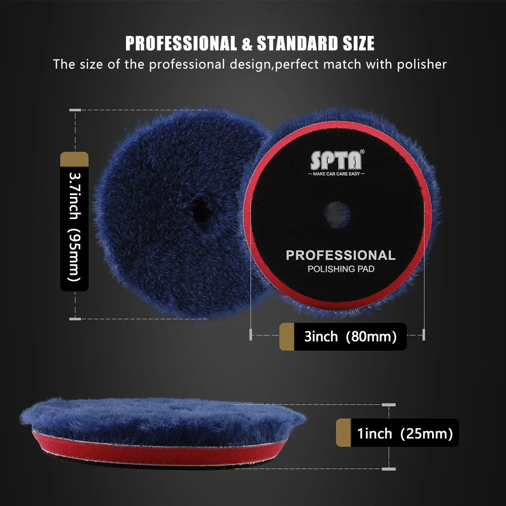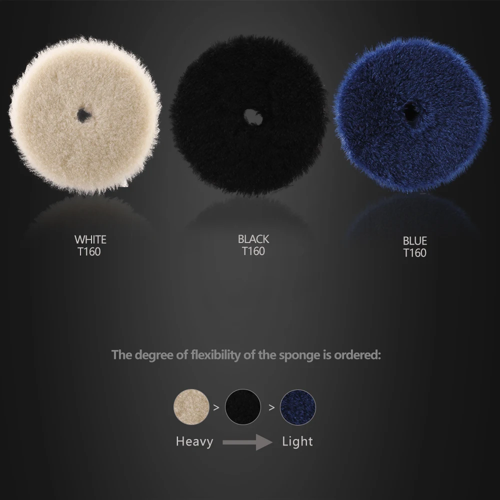 T160 большой стружки буфера шерстяная полировальная подушечка, он быстро удаляет глубокие царапины, спрей, 1200/1500 шлифовальный диск, и тяжелый окисления. Нарежьте как шерстяная подкладка и оставьте глянцевое покрытие. Подходит для стойких к царапинам и высокотвердых керамических красок.