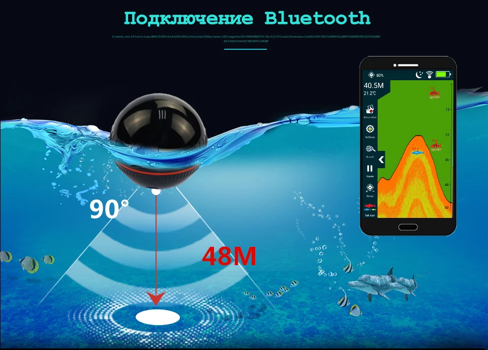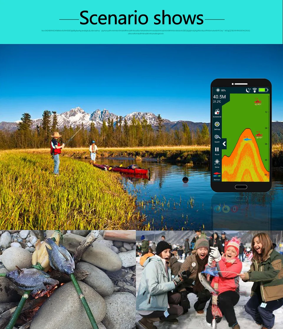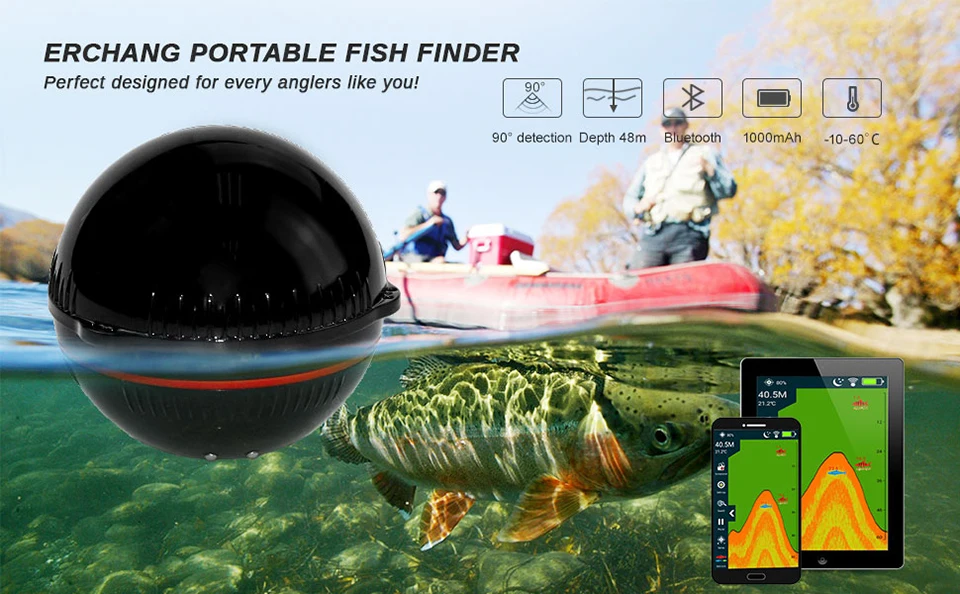 Беспроводной эхолот Erchang XA02, рыболокатор 48 м/160 футов, детектор рыболовной сигнализации, эхолот для IOS и Android, гидролокатор для рыбалки