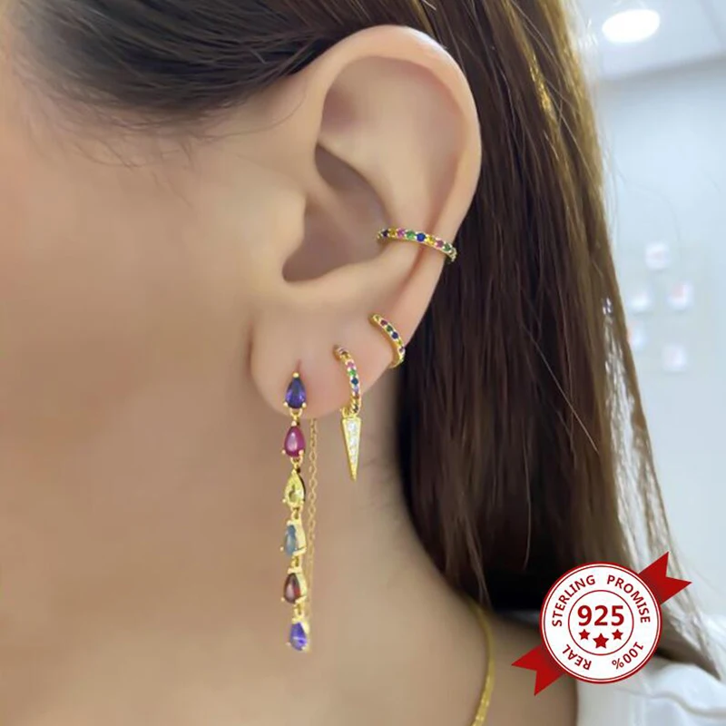 Женские серьги из серебра 925 пробы с разноцветными кристаллами