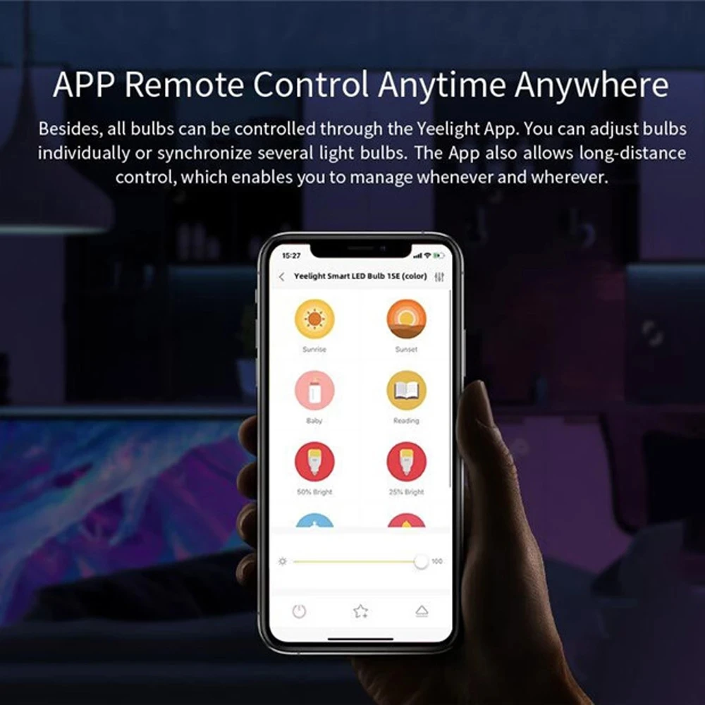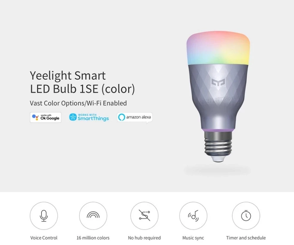 Светодиодный смарт-лампочка Yeelight 1SE поддерживает Голосовое управление, что избавляет вас от проблем с включением/выключением ламп. Поддержка Google Assistant, Samsung SmartThings, Amazon Alexa, Mijia APP.