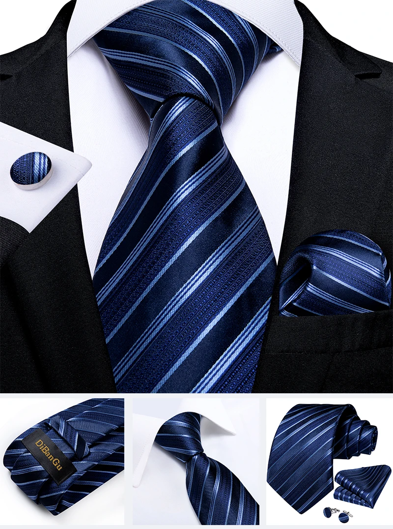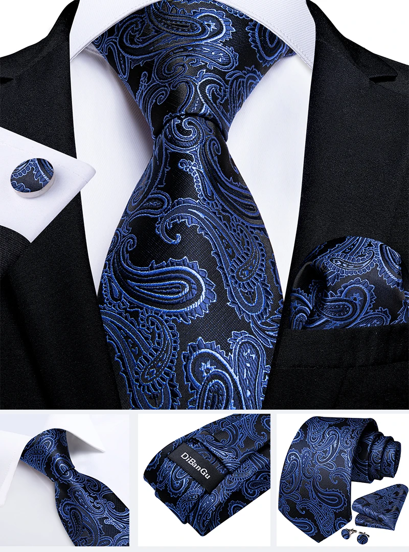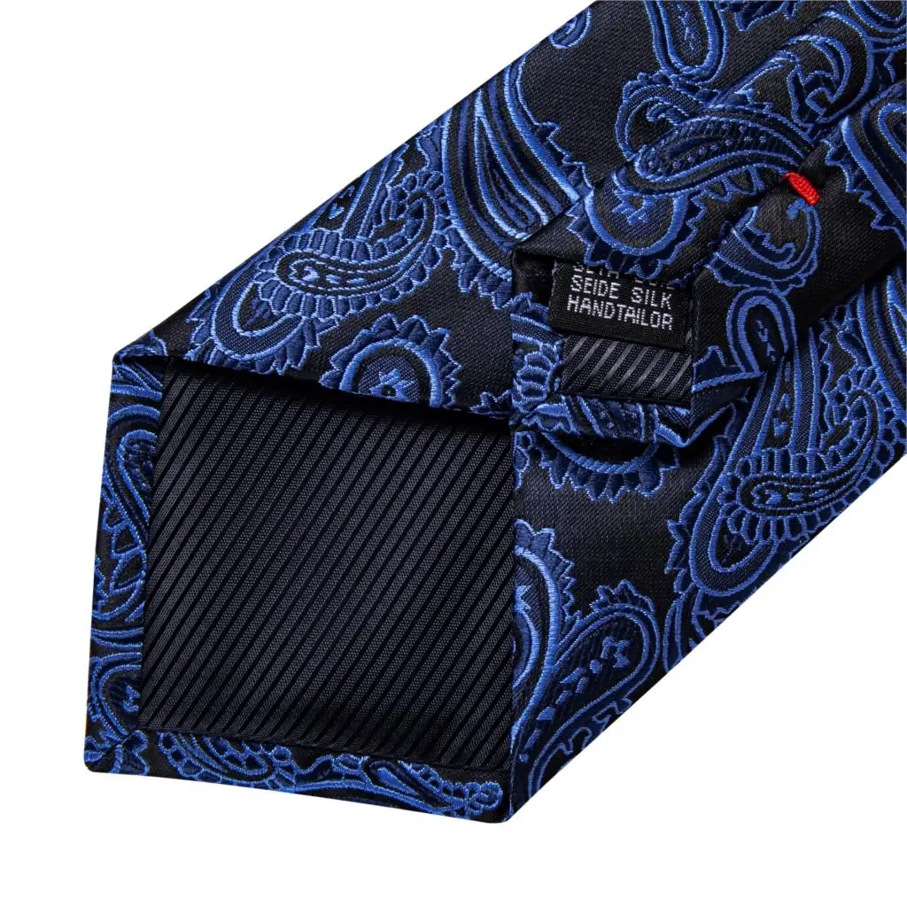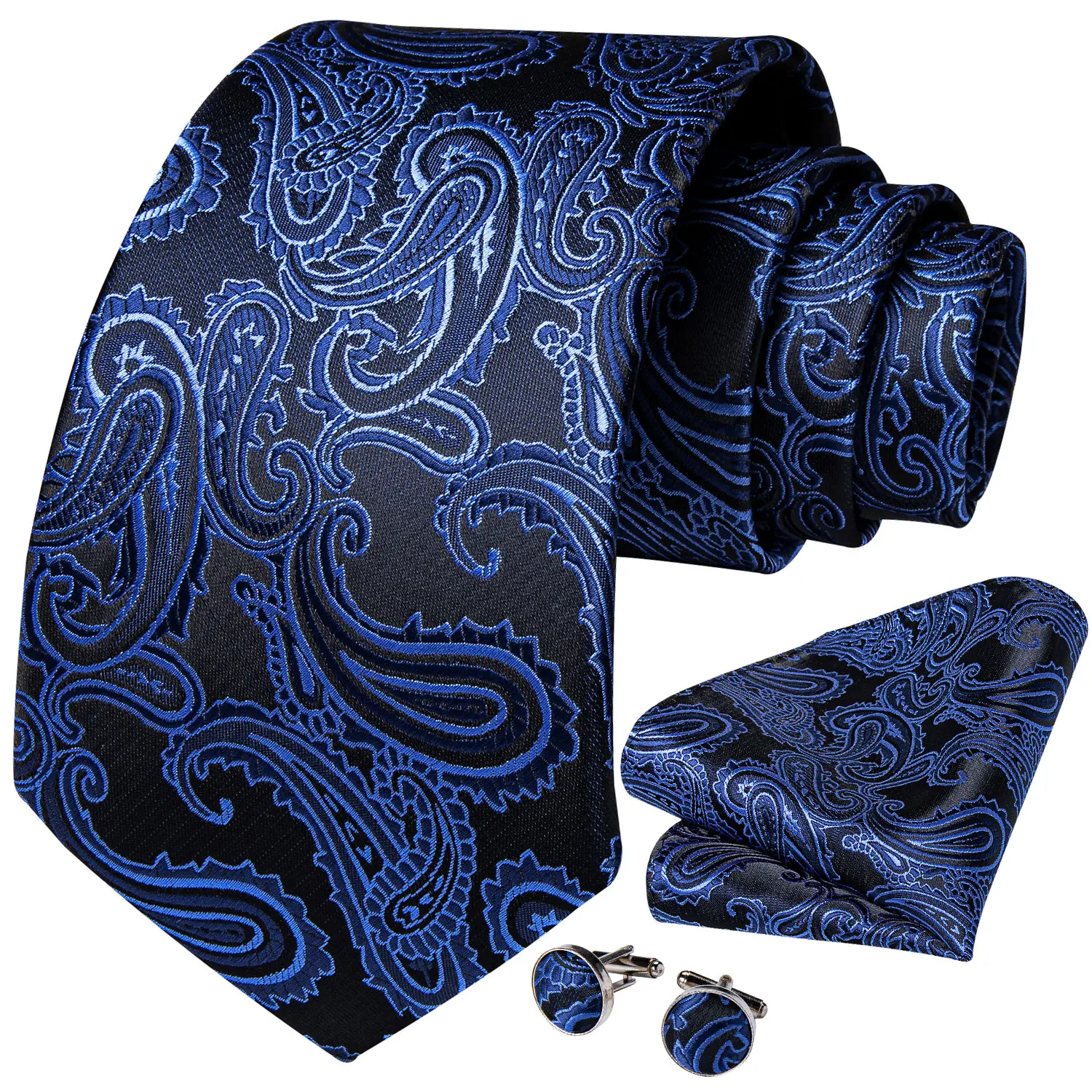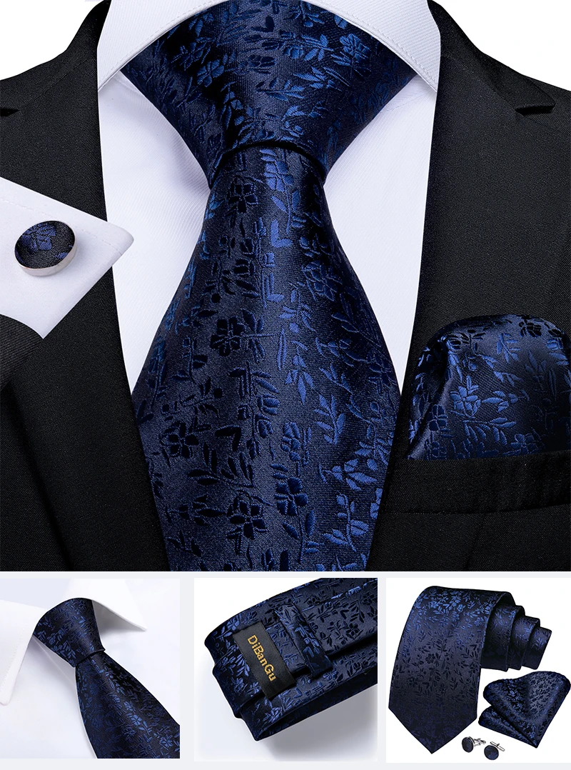 Классический темно-синий мужской галстук полосатый Пейсли Цветочный галстук карманные Квадратные запонки деловой набор галстук подарок для мужчин DiBanGu