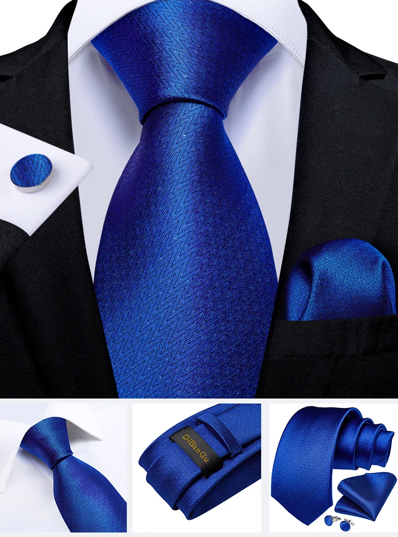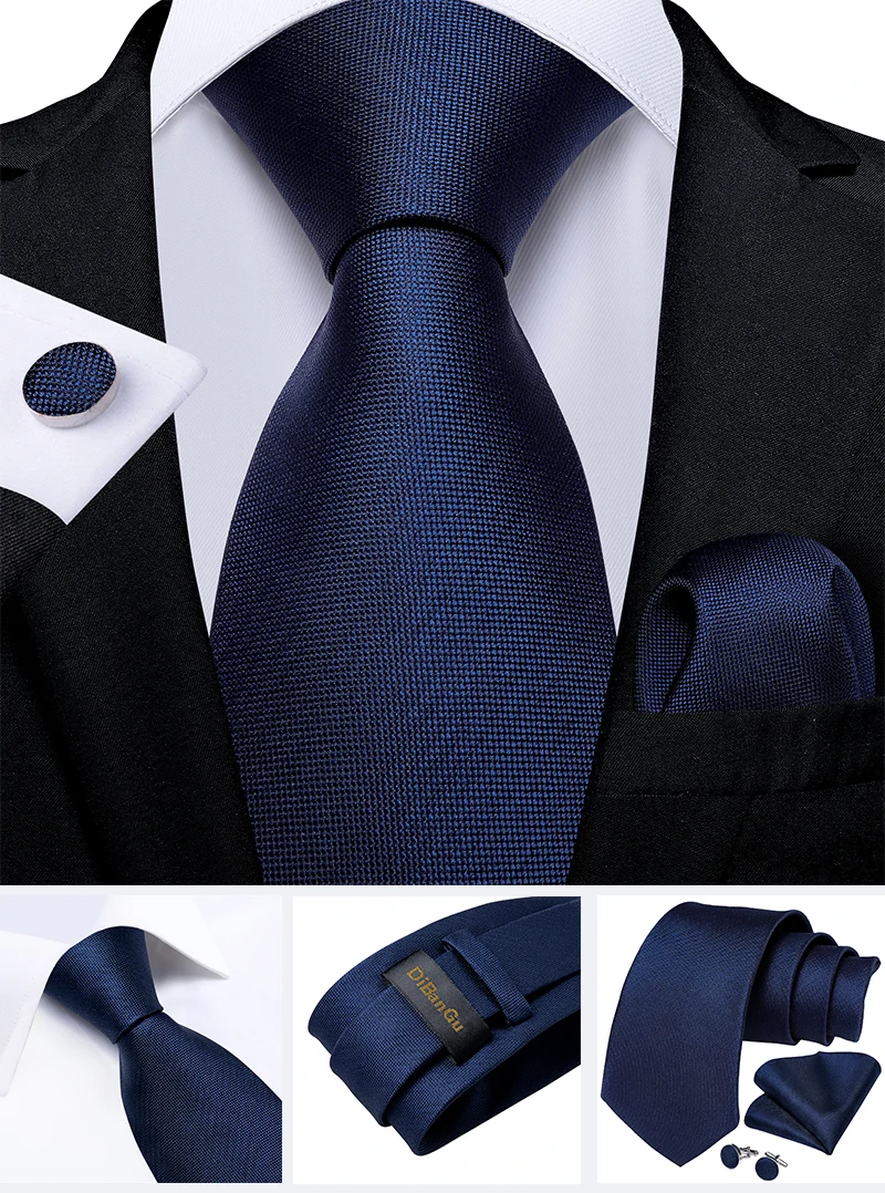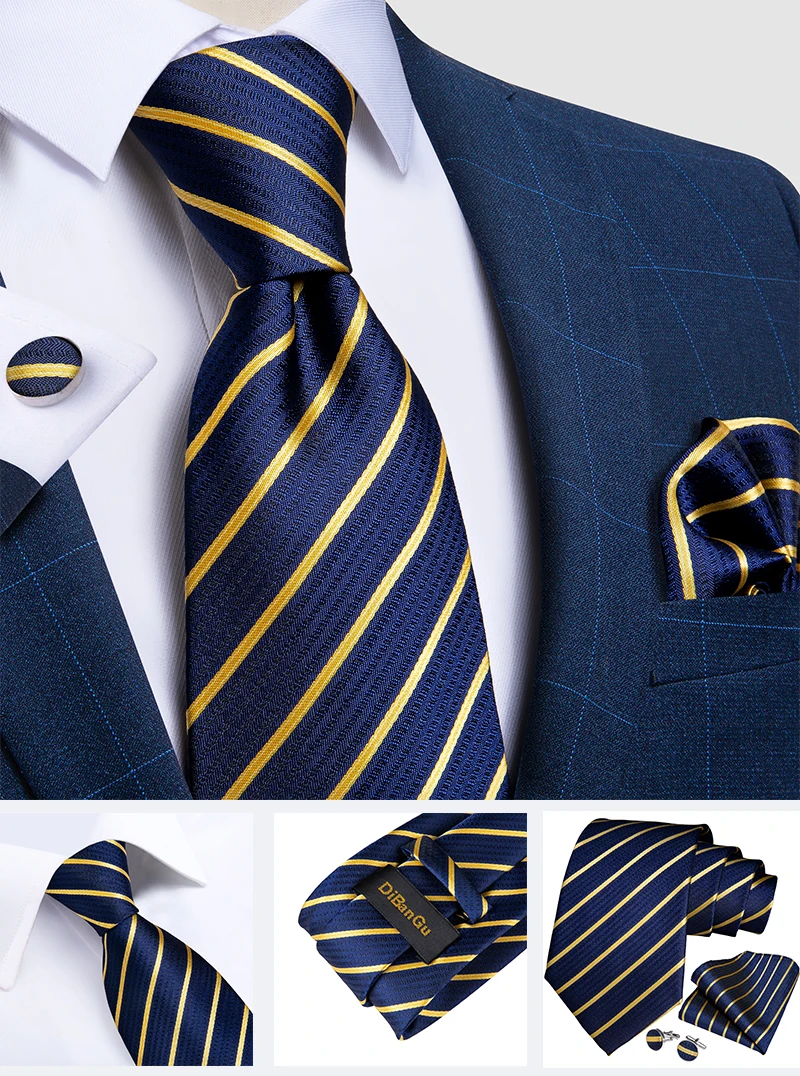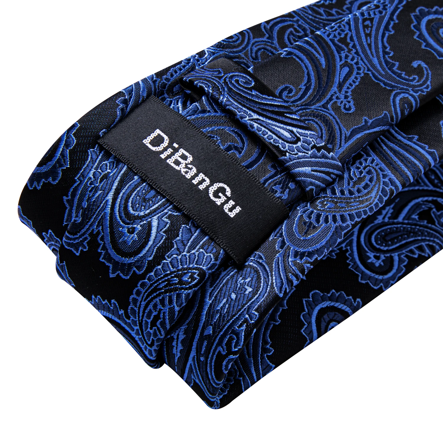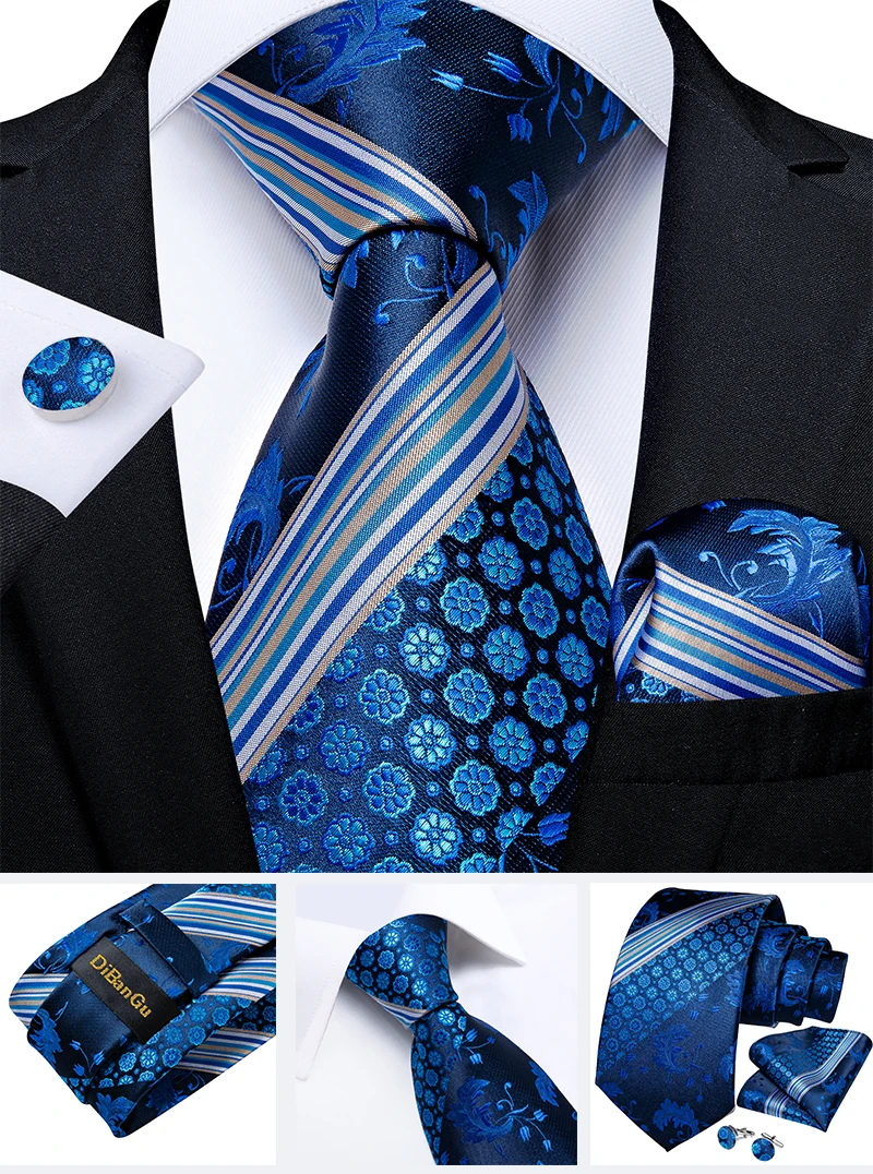 Классический темно-синий мужской галстук полосатый Пейсли Цветочный галстук карманные Квадратные запонки деловой набор галстук подарок для мужчин DiBanGu