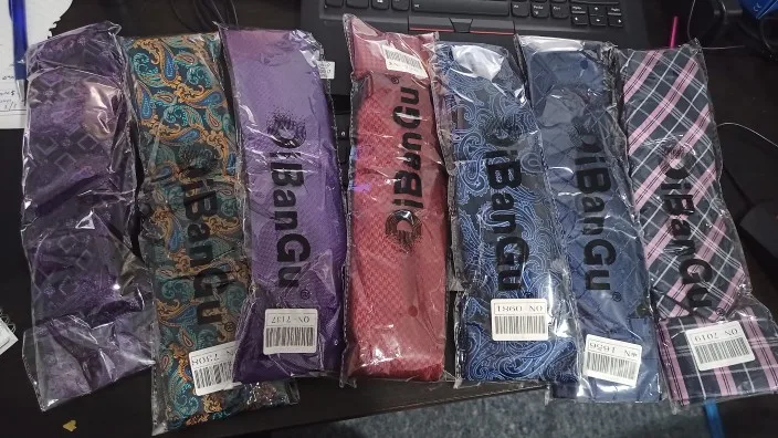 Я купил 7 галстуков для работы. Прошло много времени с тех пор, как я надел галстук, и моим старым необходимо заменить его. Цена, которую я заплатил, исключительная. Качество без дефектов. Я беспокоился, что они могут быть слишком блестящими, но они не такие. Доставка была быстрее, чем ожидалось и достаточно хорошо упакована. Я не могу жаловаться и настоятельно рекомендовать эти продукты.
