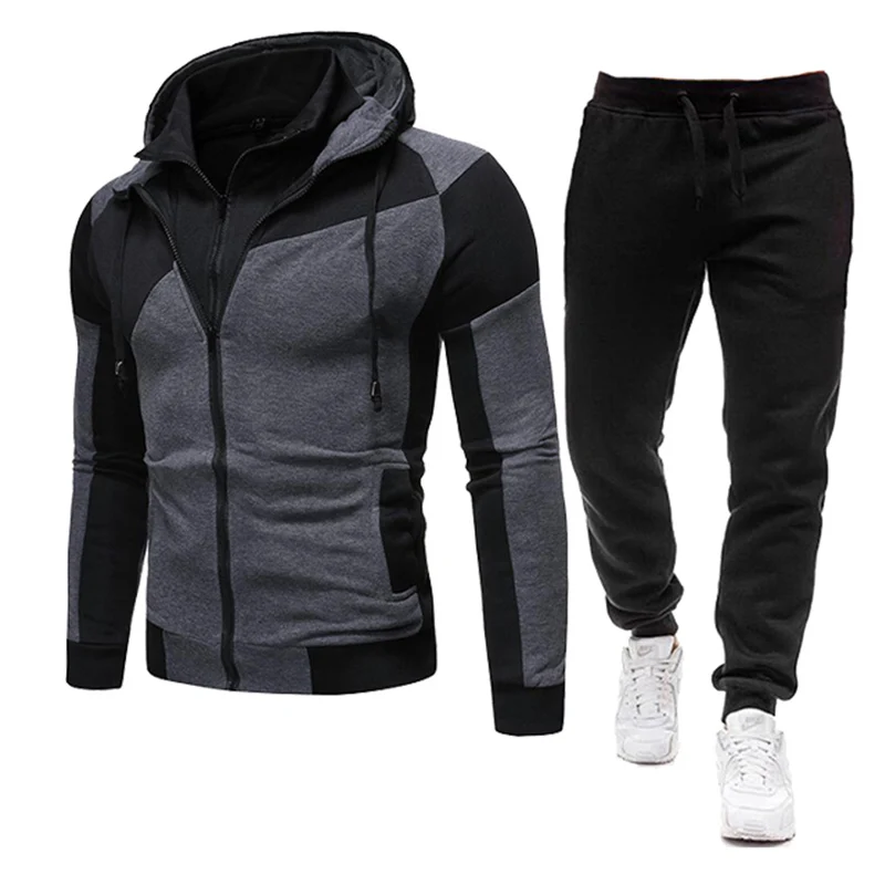 Мужской спортивный костюм, осенне-зимний комплект из 2 предметов, толстовка с капюшоном и штаны, уличная куртка