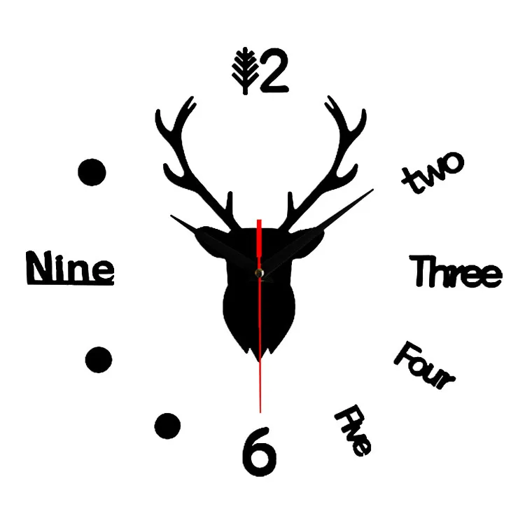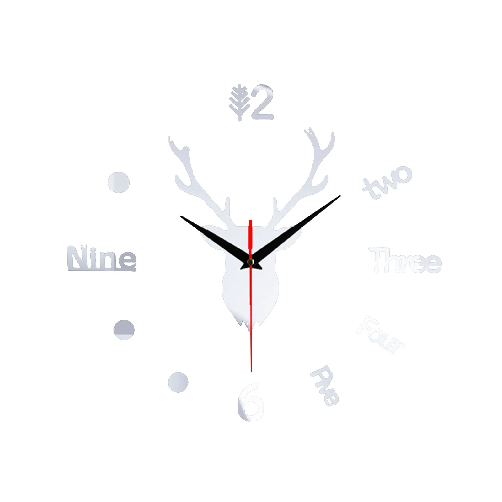 ОленьГолова большие настенные часы бескаркасные DIY настенные бесшумные часы 3D зеркальная поверхность наклейкаУкрашения дома и офиса