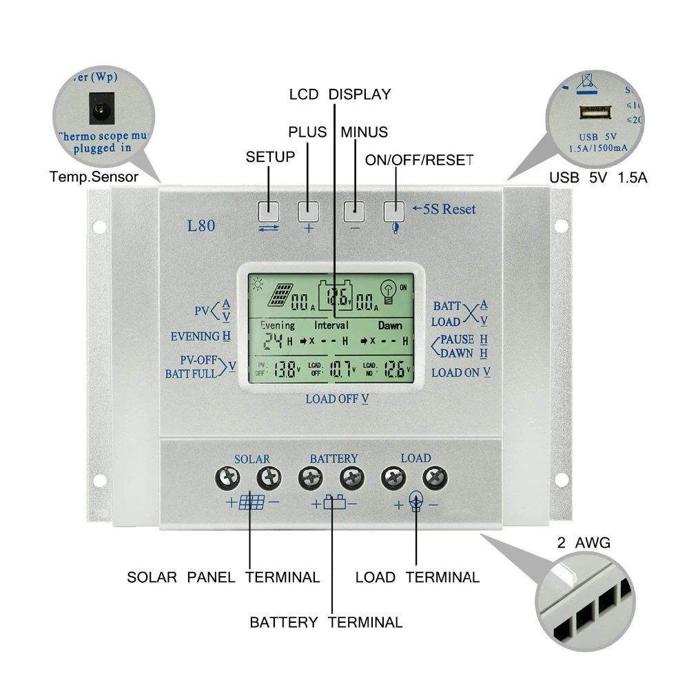 1 шт 80A/60A Солнечный мррт контроллер L80 L60