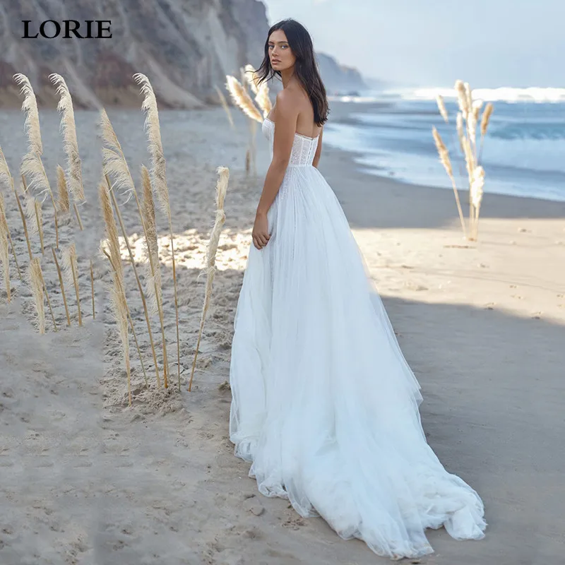 LORIE мягкое пляжное свадебное платье со съемным рукавом, женское платье с высоким разрезом сбоку, свадебные платья, Vestido De Noiva