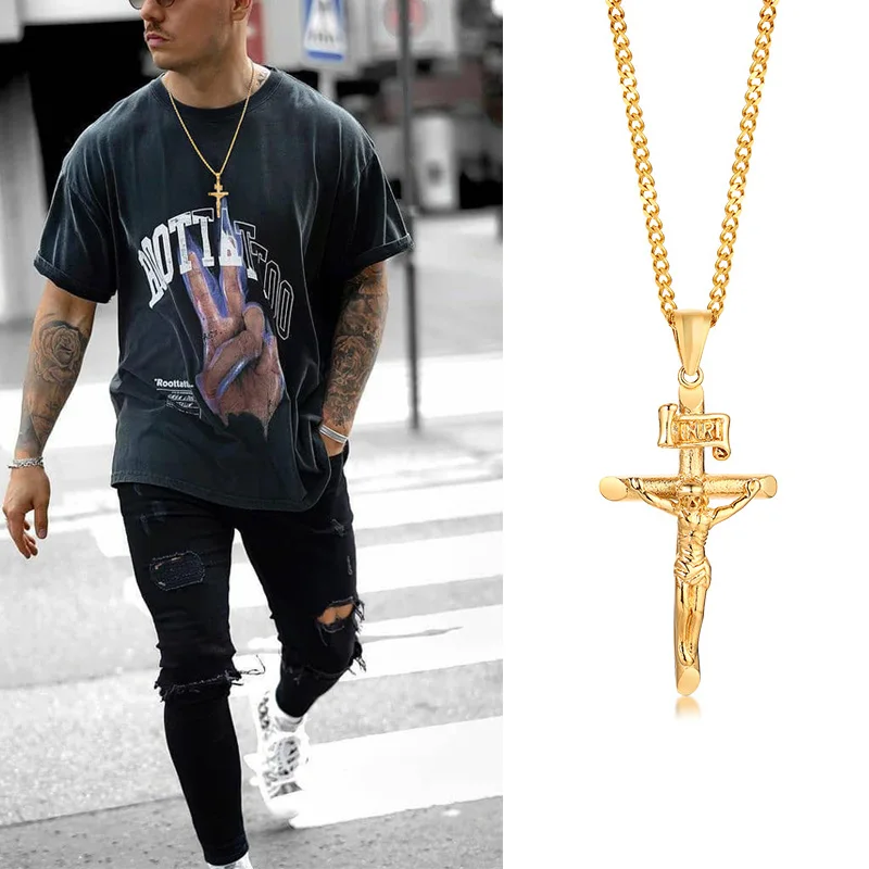 Распятие INRI JESUS кулон католический христианский крест ожерелье для мужчин ювелирные изделия