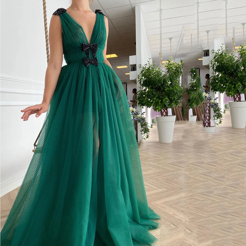 Длинное вечернее платье UZN, зеленое, с V-образным вырезом, без рукавов, с драпировкой, для выпускного вечера, размера плюс